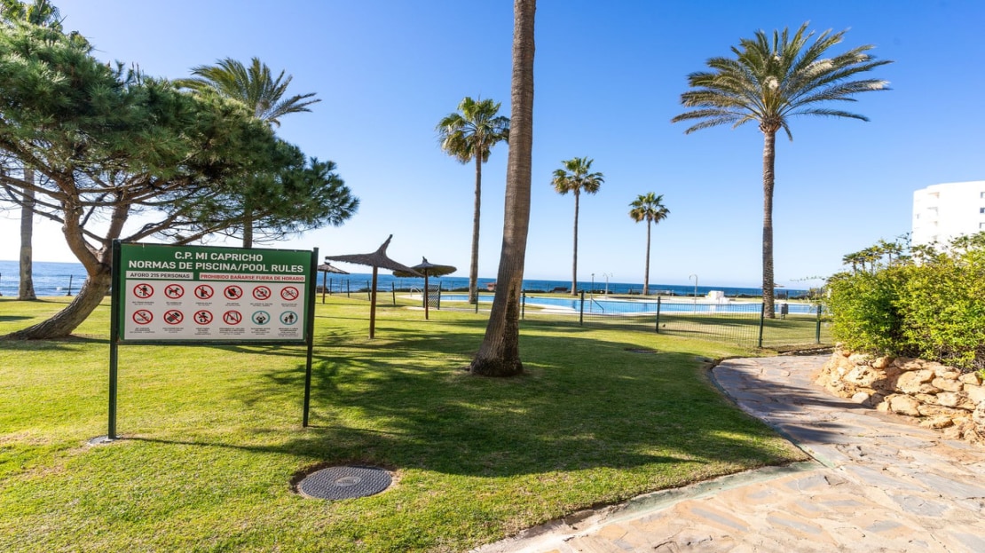 1 bedroom apartment in a beachfront complex Mi Capricho in Calahonda! Direct access to the beach with the promenade and several restaurants. Calahonda commercial area is located just in few steps where you can find everything necessary – supermarkets, bars, restaurants, pharmacies, gym, bus stop etc.