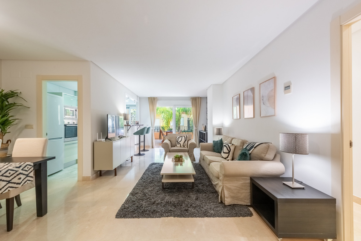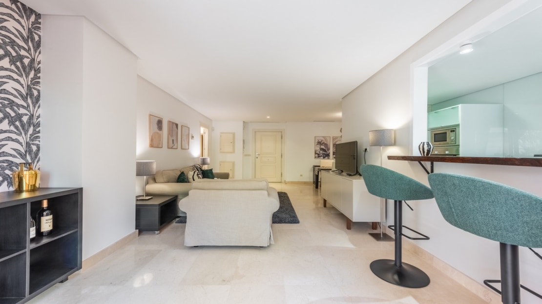 This charming one-bedroom apartment, facing southwest, is located in a modern, private residential complex in the heart of the prestigious Golf Valley in Nueva Andalucía.