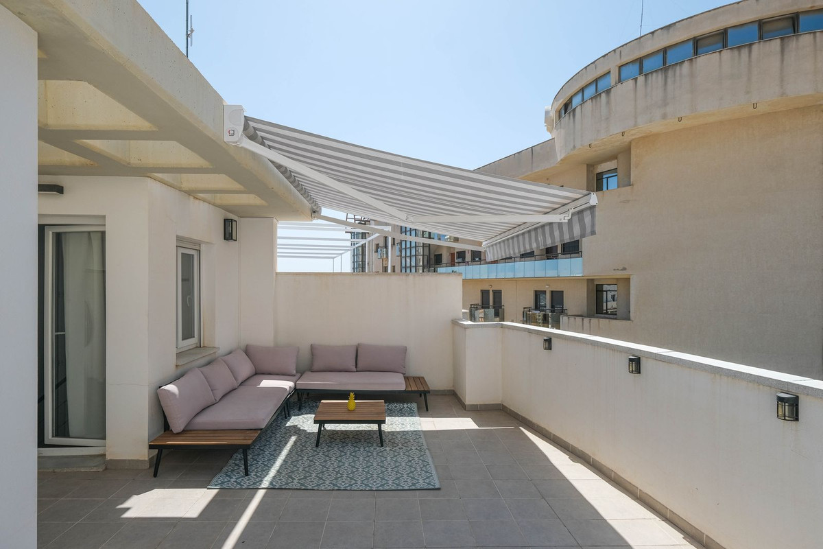 Step onto your private rooftop terrace and indulge in relaxation with a cozy sofa, dining table, and two sun loungers. Whether you’re soaking up the sun or enjoying al fresco dining, this terrace offers the perfect retreat. Inside, the apartment is equipped with modern amenities for your convenience. Stay comfortable year-round with AC/heater and unwind with a smart TV for entertainment. The kitchen is fully equipped with an oven, microwave, cooking hob, waching machine etc.