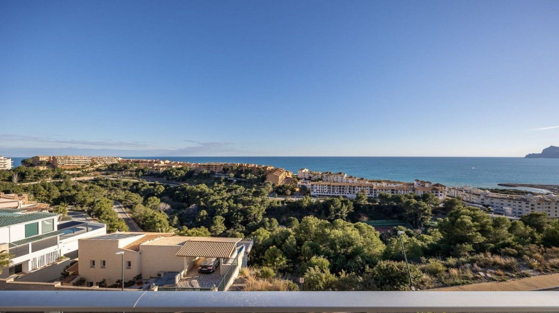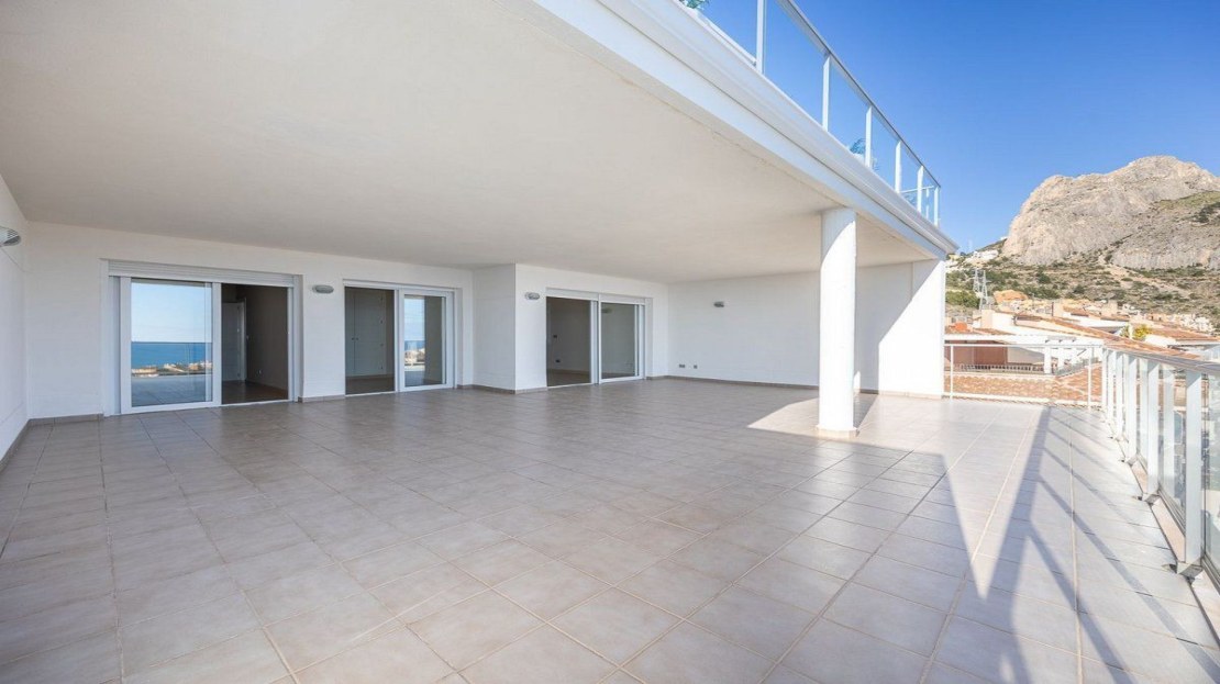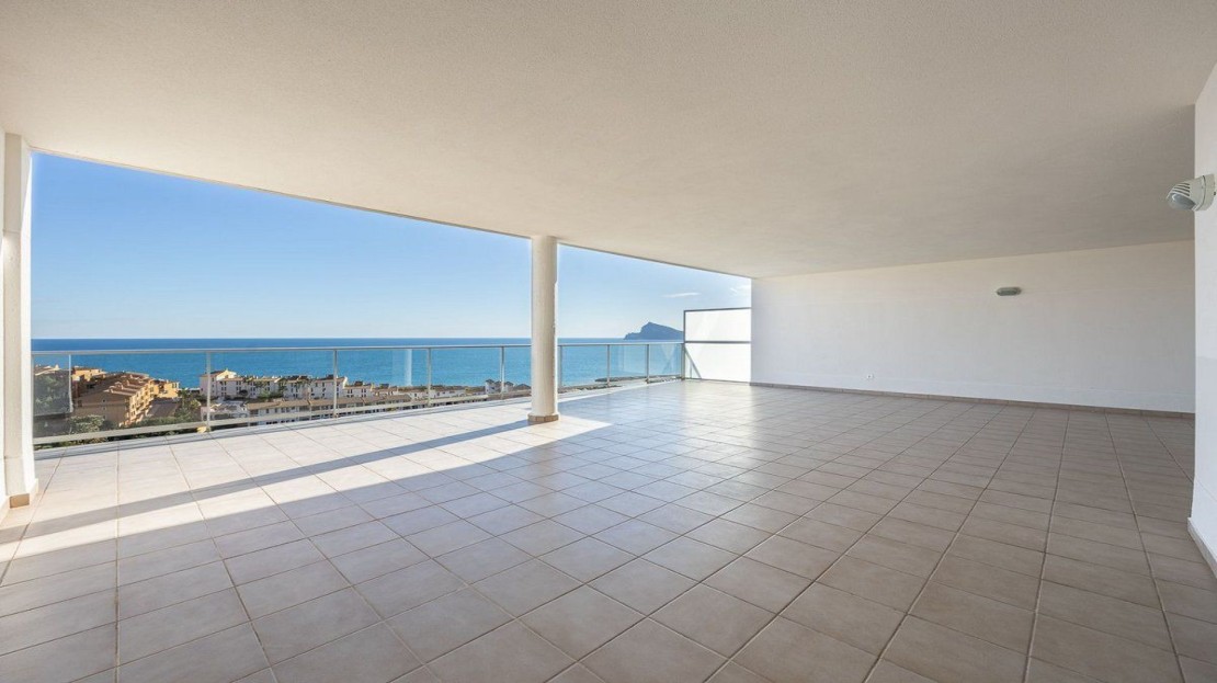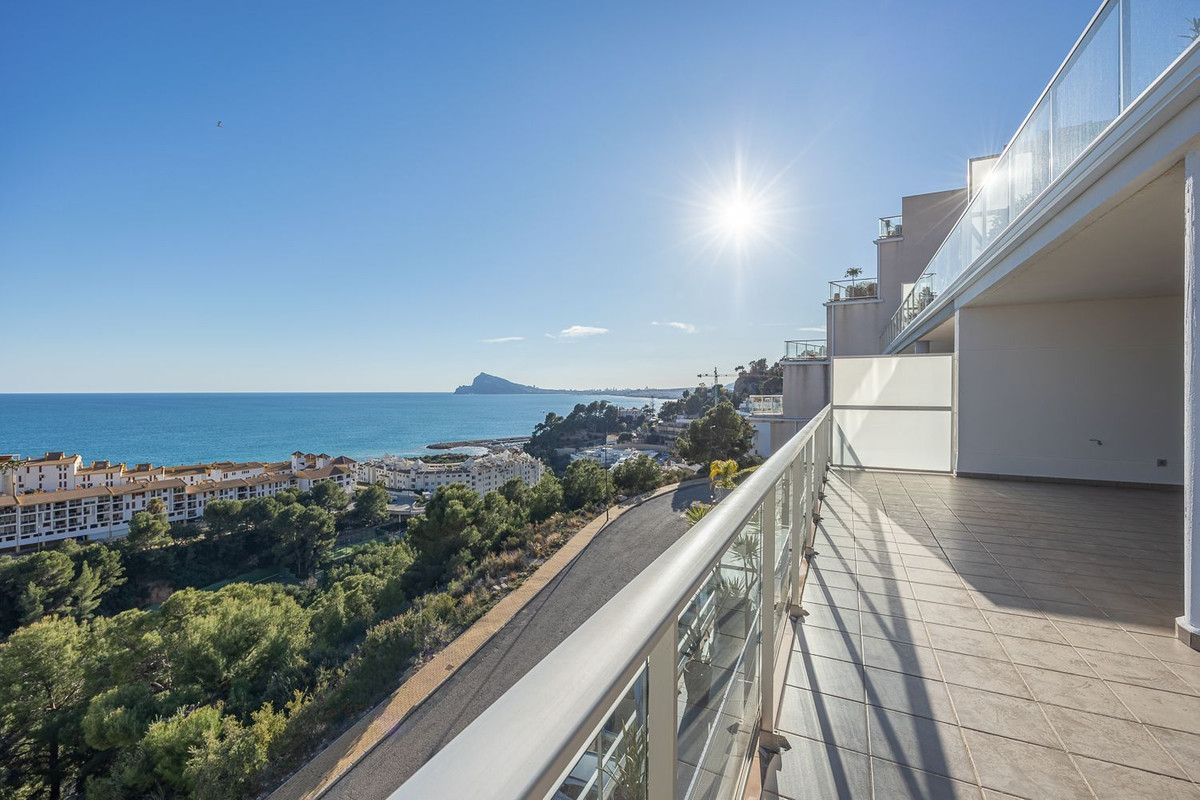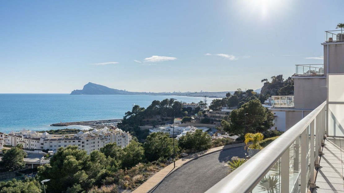 This spectacular apartment in Altea (Mascarat) offers a dream coastal living experience with breathtaking sea views. With a built-up area of 172 square meters, of which 87 square meters belong to the living space, this place is a gem in the Mediterranean paradise. The remaining 85 square meters are distributed into a spacious covered terrace of 56 square meters and an open terrace of 18 square meters.