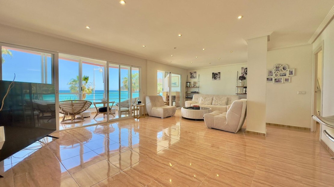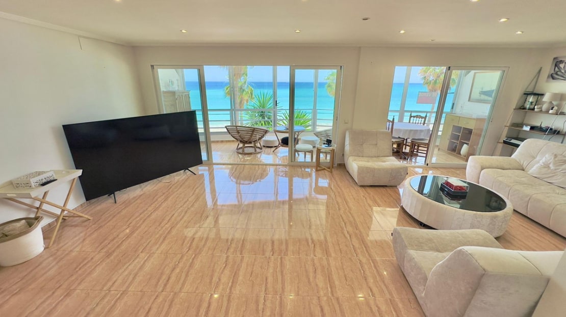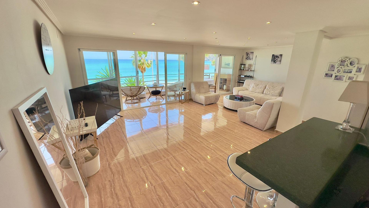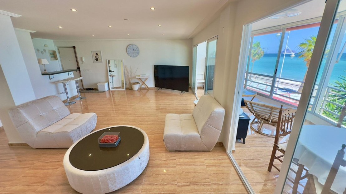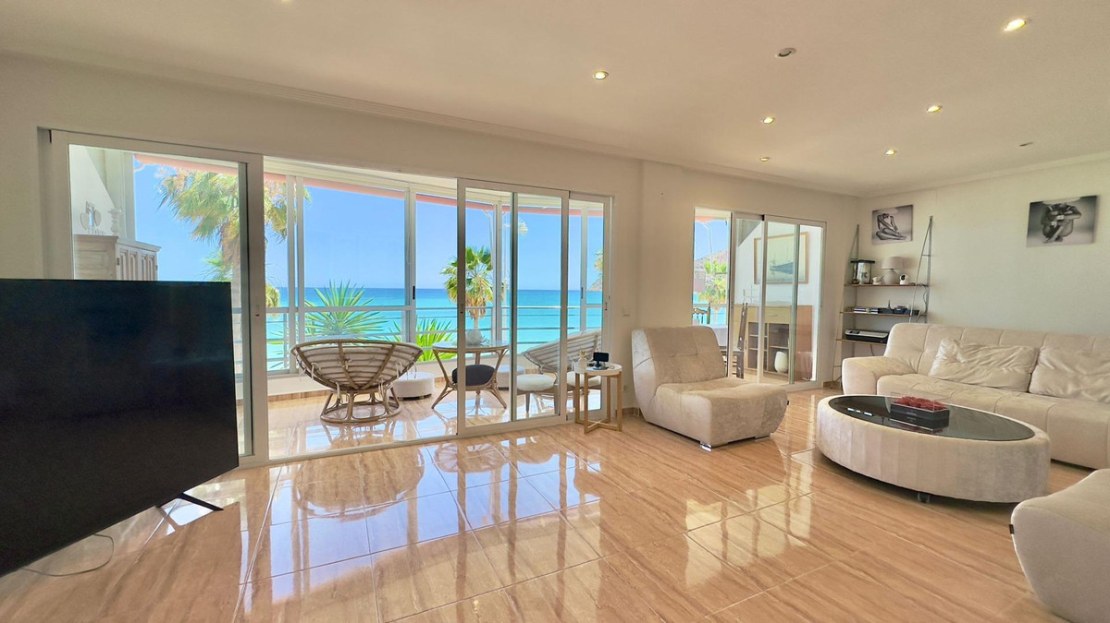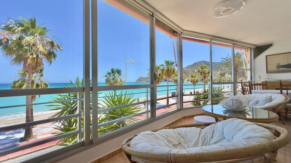 Apartment on the beach of Albir Facing the SeaDiscover your coastal oasis in this spectacular apartment located just 5 meters from the beach, offering you the comfort of living in front of the sea. Completely renovated and in perfect condition, this home gives you the comfort and modernity you are looking for.The apartment has:- 2 bathrooms: Modern and functional, designed with high quality materials.- 2 bedrooms: Spacious and bright, perfect for resting and enjoying the sea breeze.- Living room: A spacious living room ideal for relaxing or receiving visitors, with direct access to the terrace.- Glazed terrace: A privileged corner where you can enjoy panoramic views of the sea all year round.- Separate equipped kitchen: Modern kitchen fully equipped with high-end appliances, perfect for your best culinary creations.- Pool in the urbanization and green areas: An exclusive environment that includes a community pool and large green areas for your enjoyment and relaxation.- 110 m² of constructed area: Well-distributed spaces that provide a comfortable and welcoming environment.- Air conditioning: Perfect air conditioning to maintain the ideal environment at any time of the year.- Parking space: Includes an open parking space located in the lower part of the building, providing you with comfort and security for your vehicle.This apartment is a true gem facing the sea, ideal for those looking for an exclusive and relaxed lifestyle. Don't miss the opportunity to visit it and fall in love with your new home!