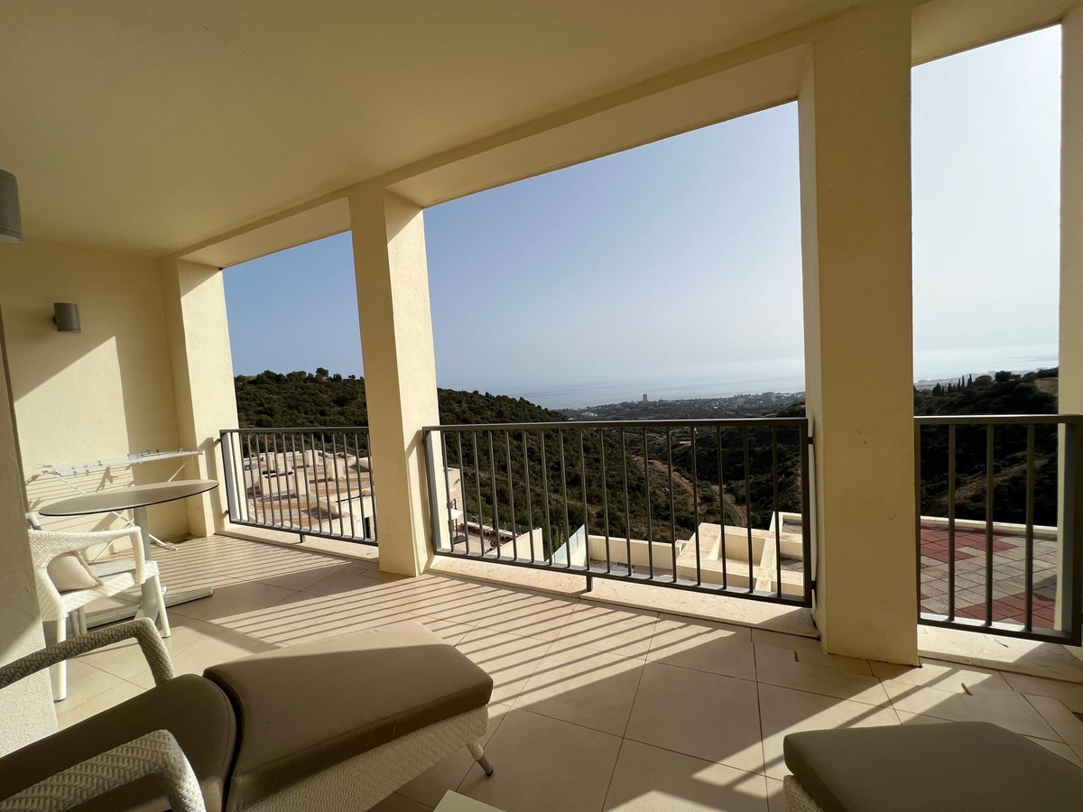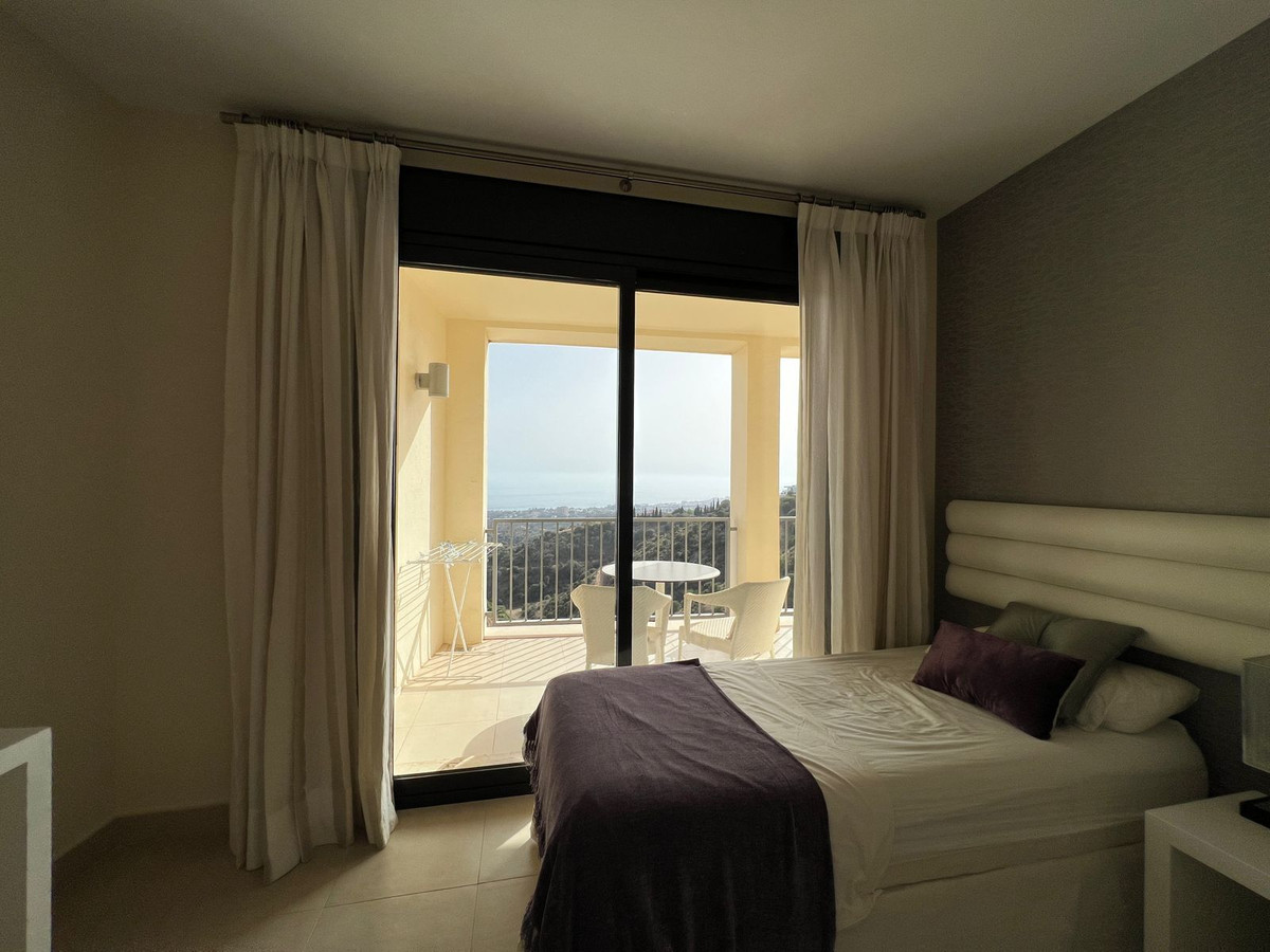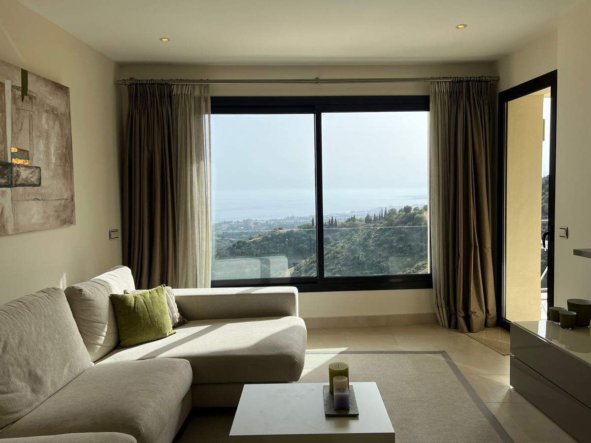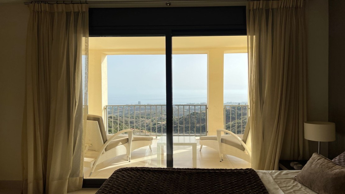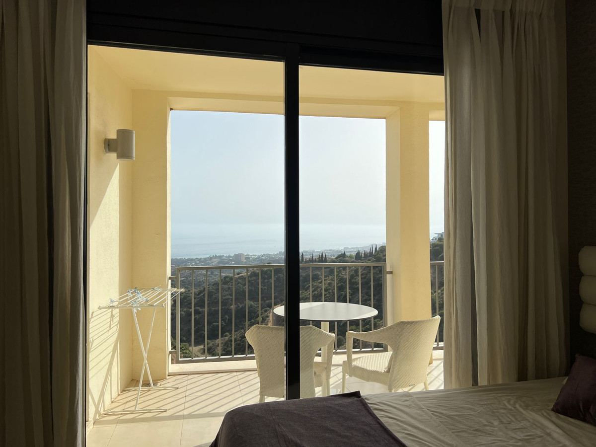 Driving up the hillside from the beaches of Marbella East, the views start to soothe the senses and prepare us for a tranquility like no other. Entering the resort through the 24 hour manned security gate, the driveway leads to the underground secure parking where there is one designated parking place and a large storeroom for the Marbella East property.. Travel up from here in a lift that arrives on the landing right outside the front door to this property. On entering this home the views are the unmistakeable initial experience which are key to this type of property. Blue skies, panoramic open views to the Mediterranean and a huge wrap around terrace define the type of lifestyle that awaits you.