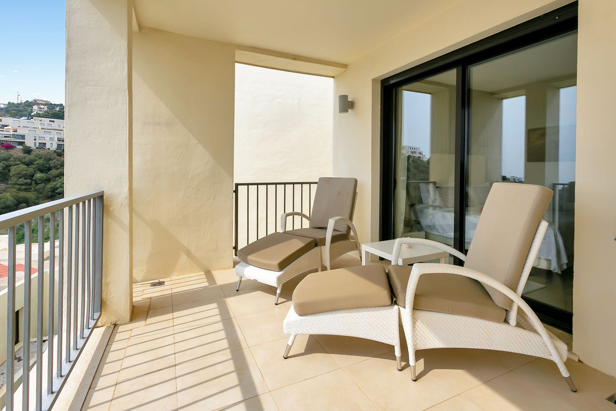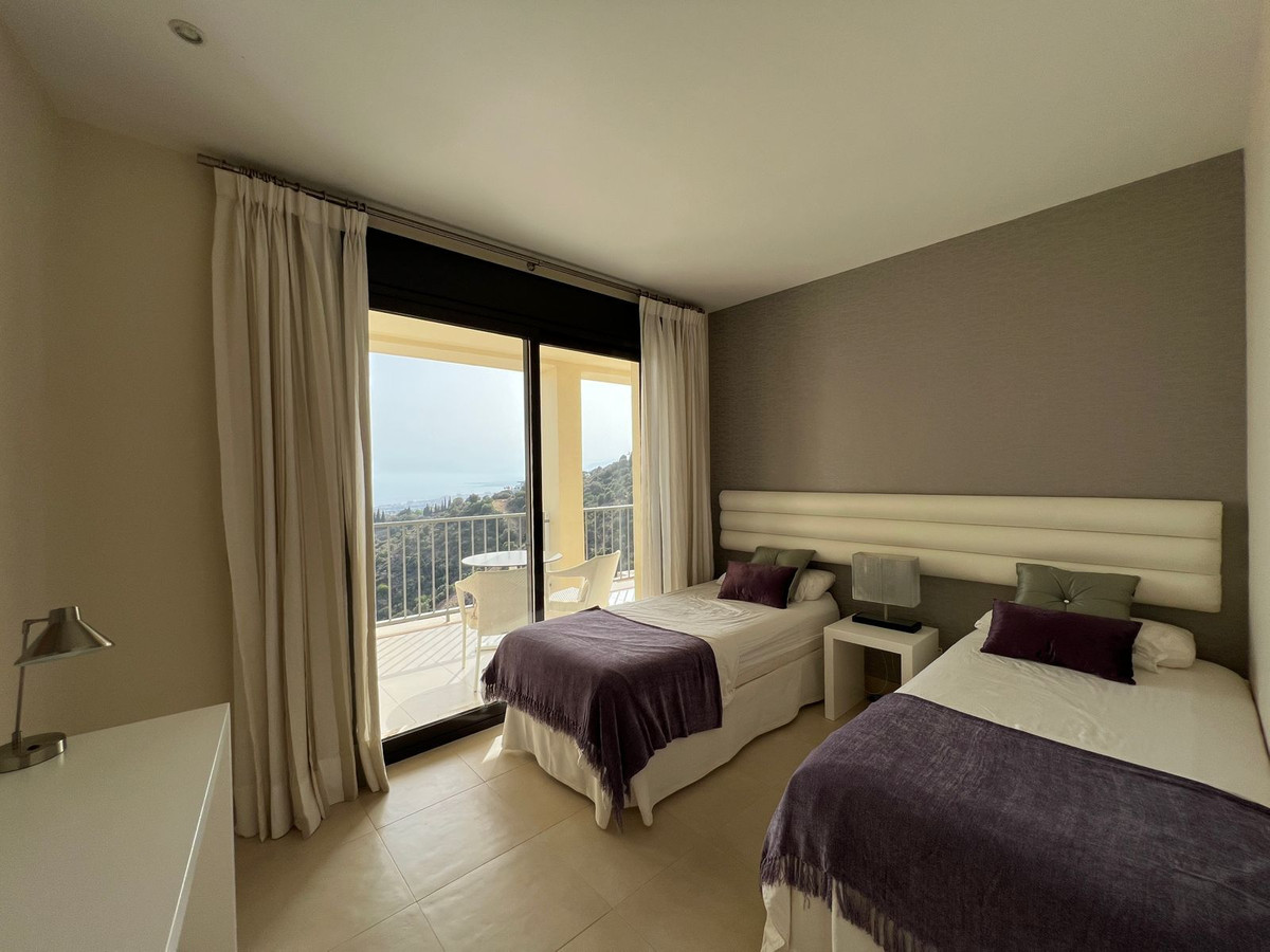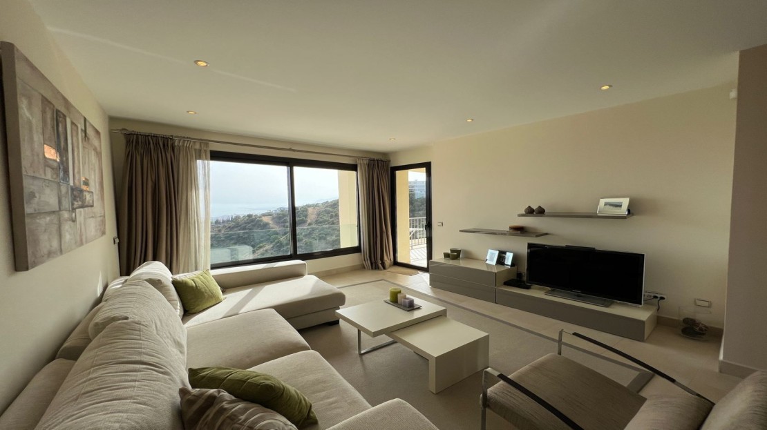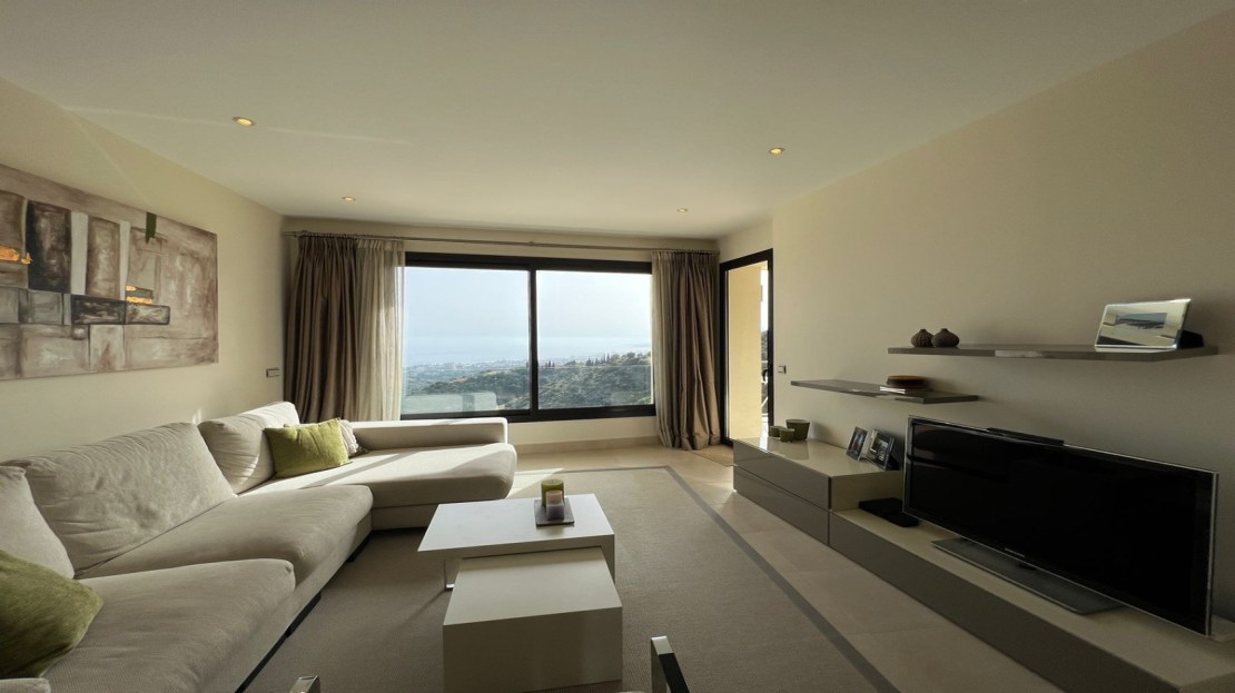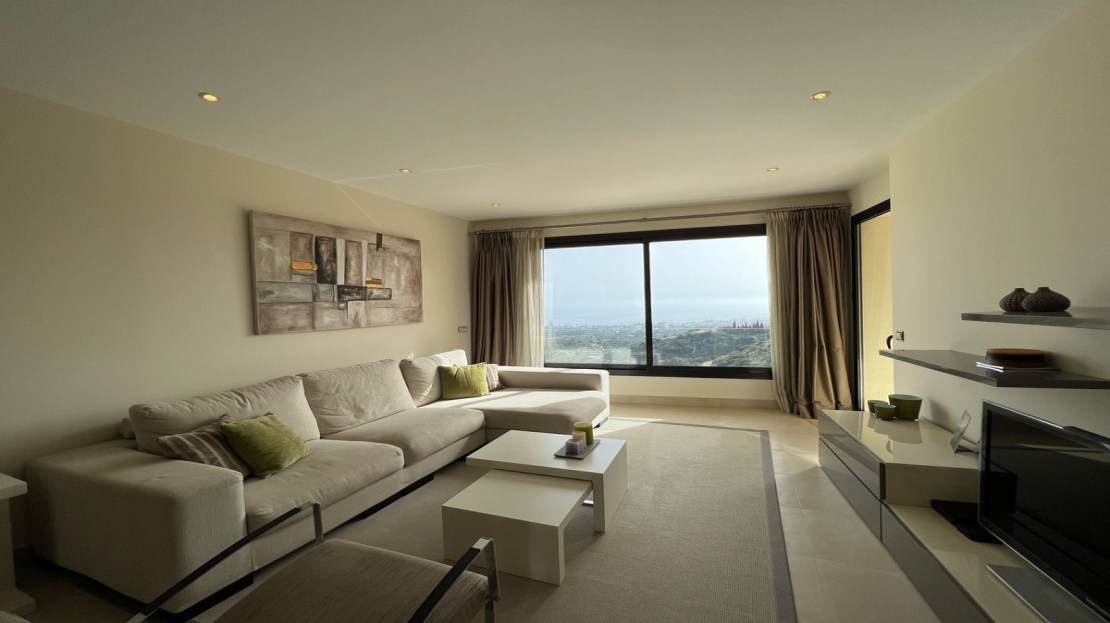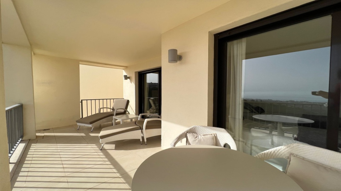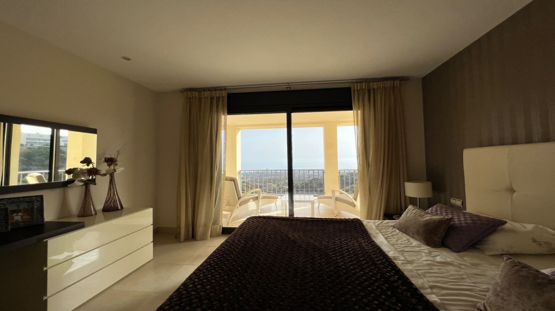 Driving up the hillside from the beaches of Marbella East, the views start to soothe the senses and prepare us for a tranquility like no other. Entering the resort through the 24 hour manned security gate, the driveway leads to the underground secure parking where there is one designated parking place and a large storeroom for the Marbella East property.. Travel up from here in a lift that arrives on the landing right outside the front door to this property. On entering this home the views are the unmistakeable initial experience which are key to this type of property. Blue skies, panoramic open views to the Mediterranean and a huge wrap around terrace define the type of lifestyle that awaits you.