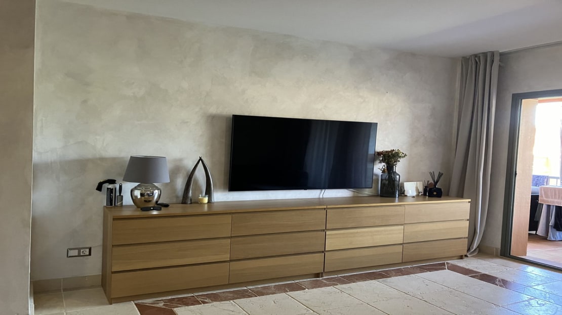 New on the market. Nice apartment in Bentalaya, Benahavis, in an urbanization located on the first line of the Golf and PG Golf&Sport Academy Trackman Range Atalaya and international college Atalaya. The urbanization has 24 hour security, 4 swimming pools, SPA , beautiful tropical gardens and a few steps distance from Mercadona. The apartment has 2 bedrooms with 2 bathrooms and a toilet and one of the bathrooms en suite. Located on the first floor with a beautiful view of the garden and south-west. It also has 2 parking spaces and a storage room.