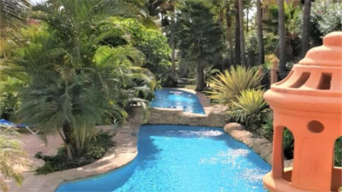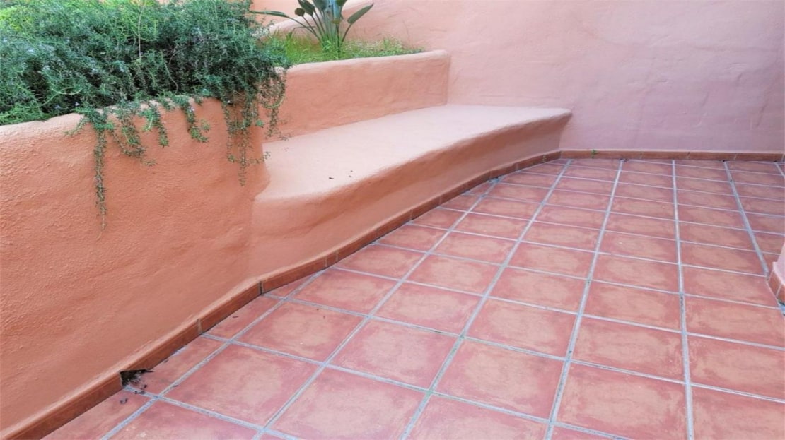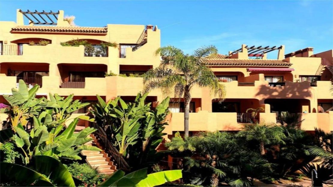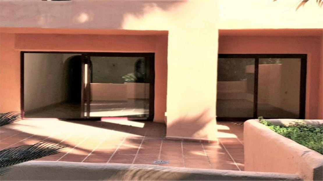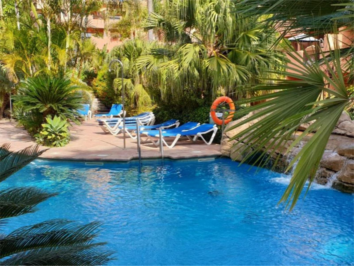 Spectacular ground floor apartment with direct access to the tropical gardens of the complex. It has a terrace of about 40 m2 facing west.