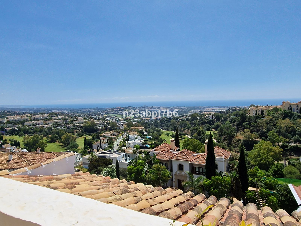 As you walk in, you'll be welcomed by a bright and airy living area that leads to a big south-facing terrace boasting stunning views of the Mediterranean Sea, mountains and golf course.