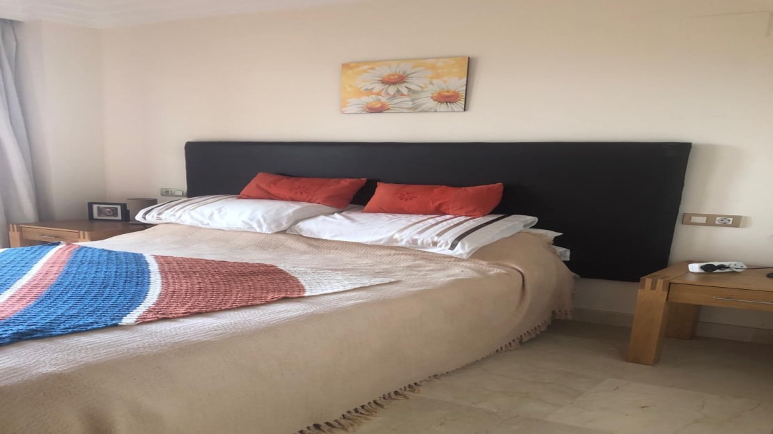 Beautiful elevated ground floor apartment that we find in the very prestigious urbanization Los Gazules, with private garden and open views to the Concha mountain and lateral sea view. It is a very quiet urbanization with lush gardens and has 3 outdoor pools, a large indoor pool with amazing views, GYM and padel court. As you enter the property you find yourself in a large open hall leading to the lounge and dining area, giving you an instant feeling of “coming home”. This marble floored apartment has 2 bedrooms both with ensuite bathrooms and is very spacious. It also has a good size kitchen with extra laundry area.