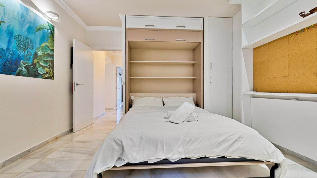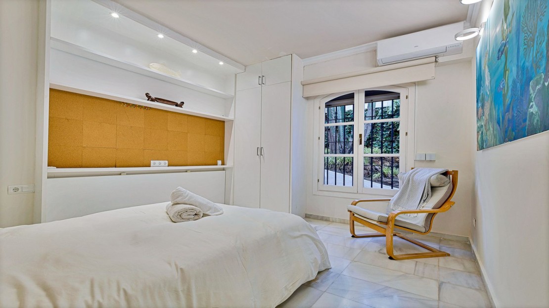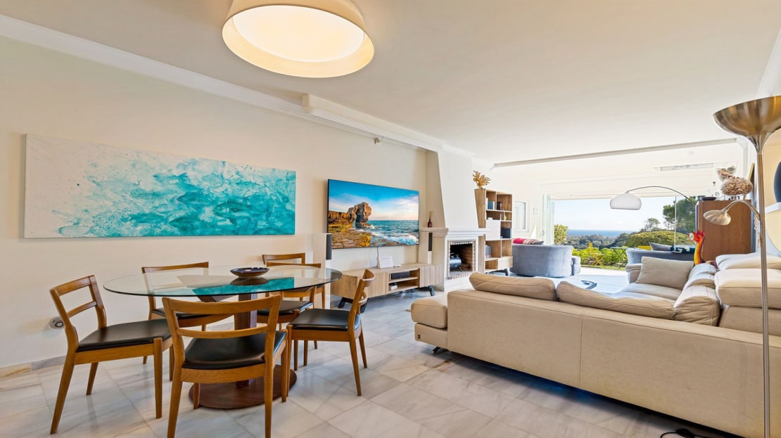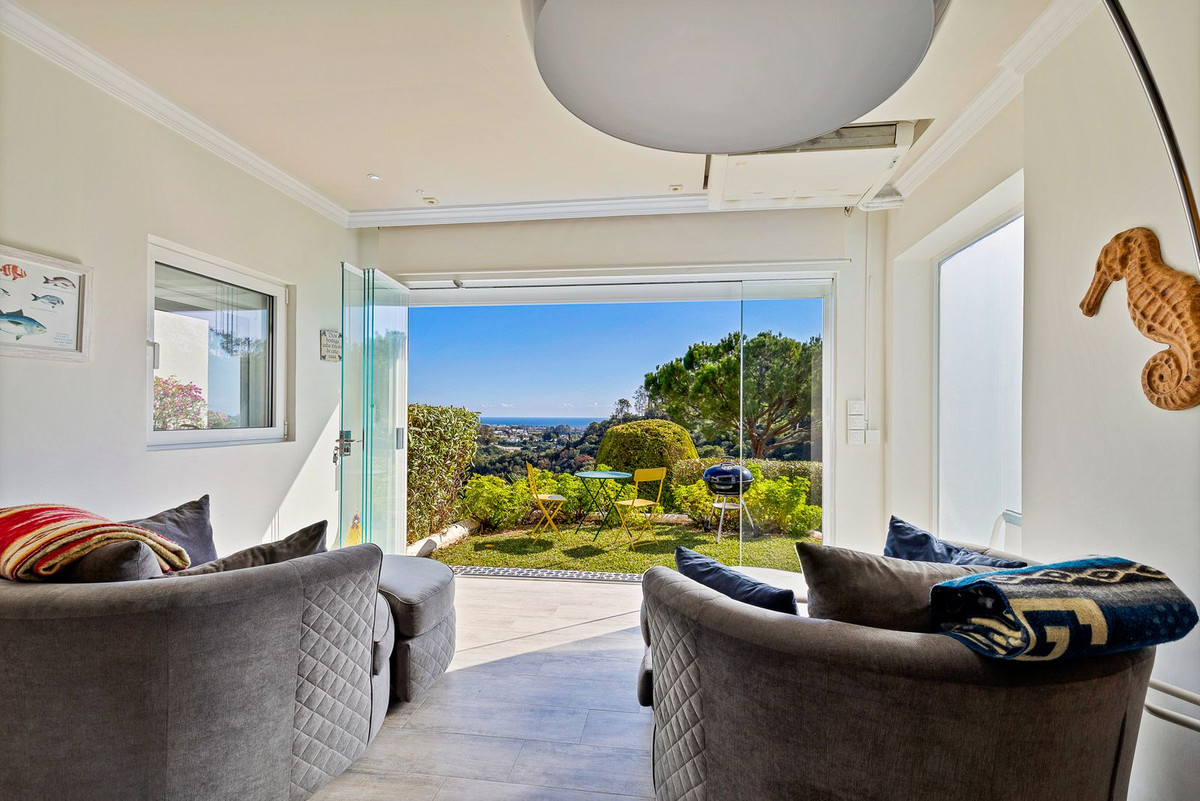 This spectacular 2 bedroom first floor apartment is located in the sought after area in Puerto de Almendros in Benahavis. Upon entering, you will be amazed by the stunning sea and nature views that the property offers. The spacious kitchen is connected to the living room, which stands out for its elegant fireplace, creating a stunning focal point. In addition, the apartment features a charming reading nook that opens to the garden through a glass door, providing abundant natural light and ensuring privacy.