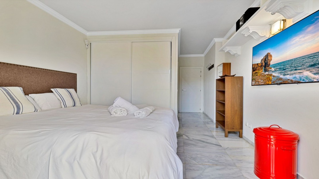 The luxurious master bedroom features a recently renovated en-suite bathroom and offers the same stunning views as the living room, allowing you to enjoy a peaceful and relaxing atmosphere from the comfort of your bed. The property also includes a good sized second bedroom and a second renovated bathroom. Los apartment is in an idyllic location, surrounded by nature, with easy access to Benahavis, San Pedro, Marbella, the beach and several golf courses, such as Los Arqueros and La Quinta.