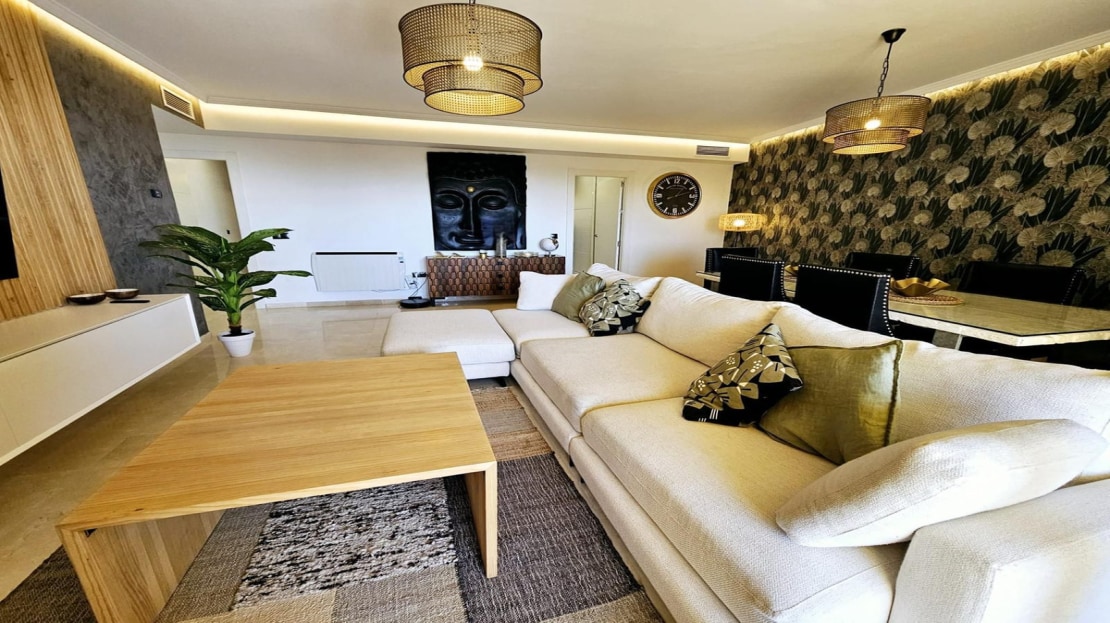 Discover your new home in the exclusive Finca Doña María, Benalmádena! This impressive 109 m² apartment offers you an unrivalled lifestyle, with a spacious 42 m² living-dining room that opens onto a large sunny terrace. Enjoy unobstructed views of the golf course and the sea while relaxing outdoors. The independent kitchen is fully equipped and has a practical laundry room. With two bedrooms, two bathrooms, one of them en suite, and built-in wardrobes, you will have all the space you need.