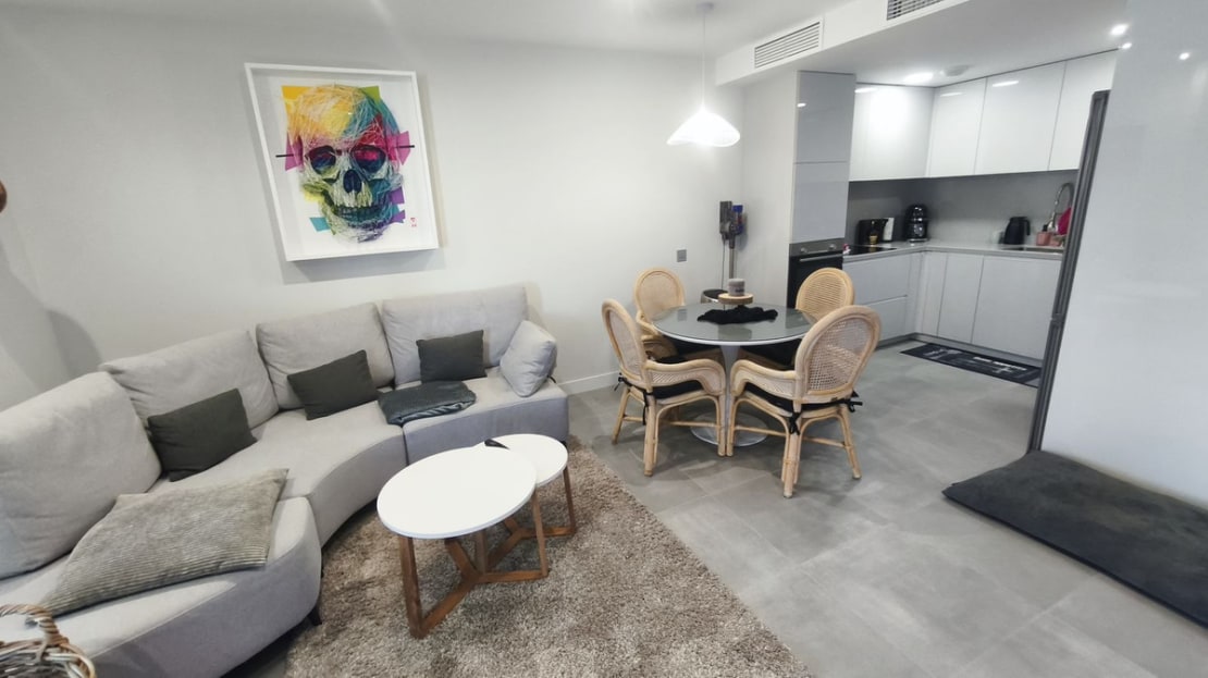 This beautiful, modern apartment, only two years old, offers a unique opportunity for those looking for comfort and style. The spacious terrace, partly covered, is a true oasis of tranquility and offers beautiful views of the surroundings, with glimpses of the sea in the distance. The apartment has separate air conditioning in all rooms, so you can enjoy the best indoor climate all year round. Located a stone's throw from charming Benalmádena Pueblo, it offers the perfect balance between tranquility and proximity to local amenities. The building itself is of high quality and offers modern facilities for carefree and luxurious living. In short, a perfect place to live or as a vacation home.