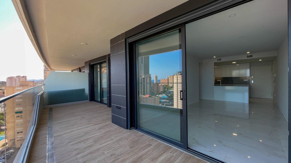 Discover this luxury apartment for sale in a modern high-rise residential complex with stunning sea views. Located on level 13, this unique property combines comfort, style, and cutting-edge technology to create the perfect living environment. Enjoy elevated views and privacy in the spacious living room, which is perfect for relaxation and entertainment. The modern open kitchen with an island offers a convenient space for cooking and socializing. The apartment features two sea-oriented rooms designed to capture beautiful sea views, along with two stylish and functional bathrooms with high-quality fixtures. High ceilings enhance the sense of space and light throughout the apartment. The large terrace provides a perfect spot to enjoy the breathtaking scenery.The residential complex offers a spacious swimming pool for residents, complete with a chill-out area. There is a relaxation area featuring a sauna and a warm pool, as well as a modern gym equipped with the latest fitness equipment. Sports grounds are available for paddle tennis, basketball, and football. Personal underground parking spaces ensure convenience and security.This apartment is just a few minutes' walk to Poniente Beach and benefits from a developed infrastructure, with shops, restaurants, and cafes all within walking distance. The location offers excellent transport accessibility with quick access to the main transport arteries of the city. Embrace luxurious living in a prime location with breathtaking views and top-notch amenities. Contact us for more details or to schedule a viewing.