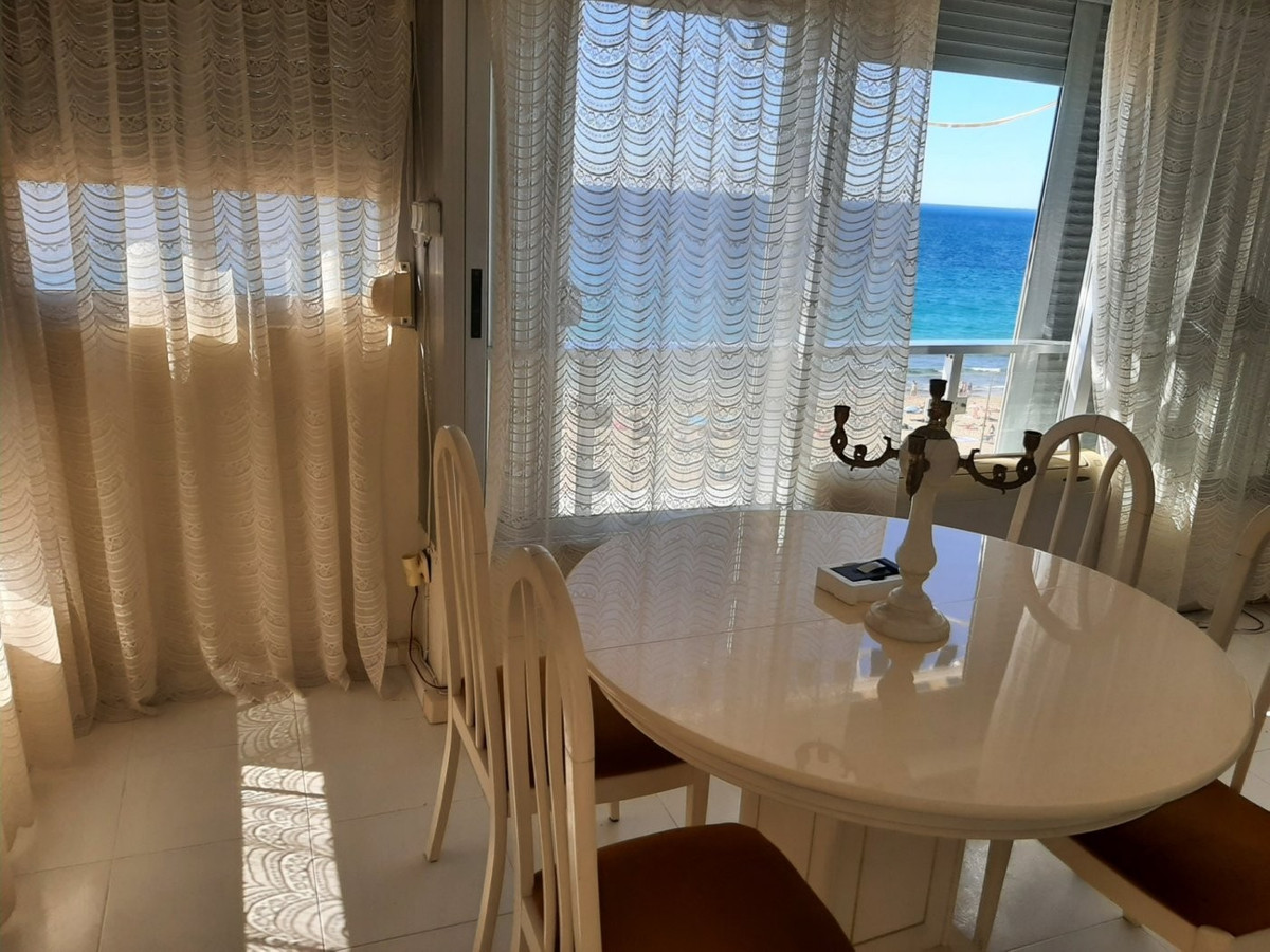 Apartment in Benidorm, 1st Line area, 126 m. surface, 10 m. from the beach, 2 double bedrooms, 3 bathrooms, property in good condition, equipped kitchen, interior wood carpentry, southeast orientation, ceramic, aluminum exterior carpentry. Electric shutters. ~ Extras: water, air conditioning, built-in wardrobes, pantry, corner, gallery, garden, bright, light, furniture, glazed terrace, trees, coast, first line, supermarkets, sea views, passage area, children's areas, parking included