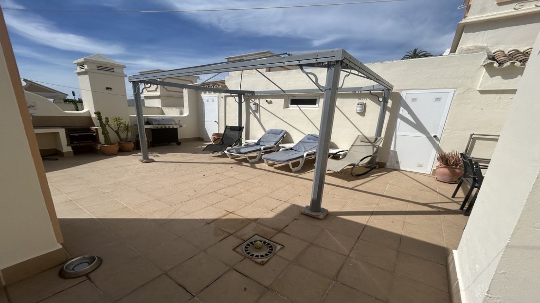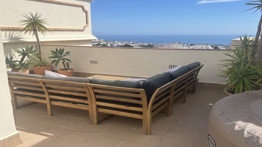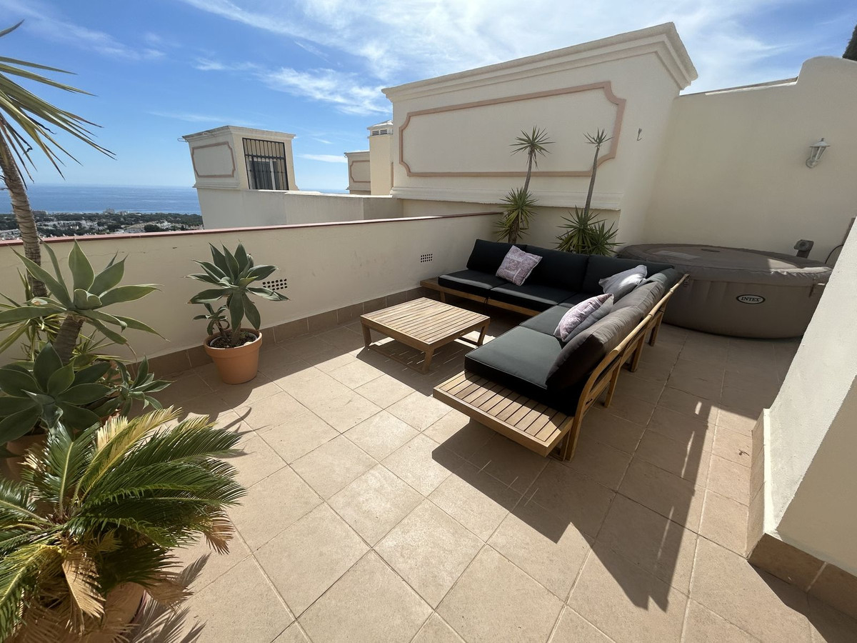 Experience luxury living in this spacious penthouse featuring 2 bedrooms and 2 bathrooms. Enjoy panoramic sea views from your private terrace and amazing top floor terrace, perfect for sunset watching. Modern finishes and an open-concept design make this a must-see!