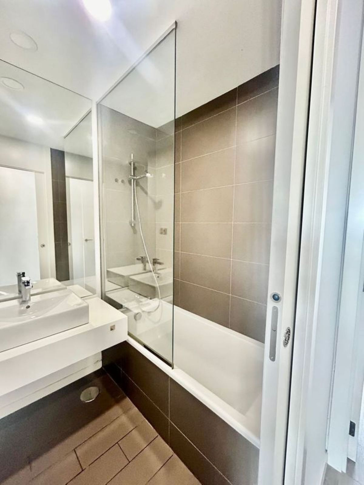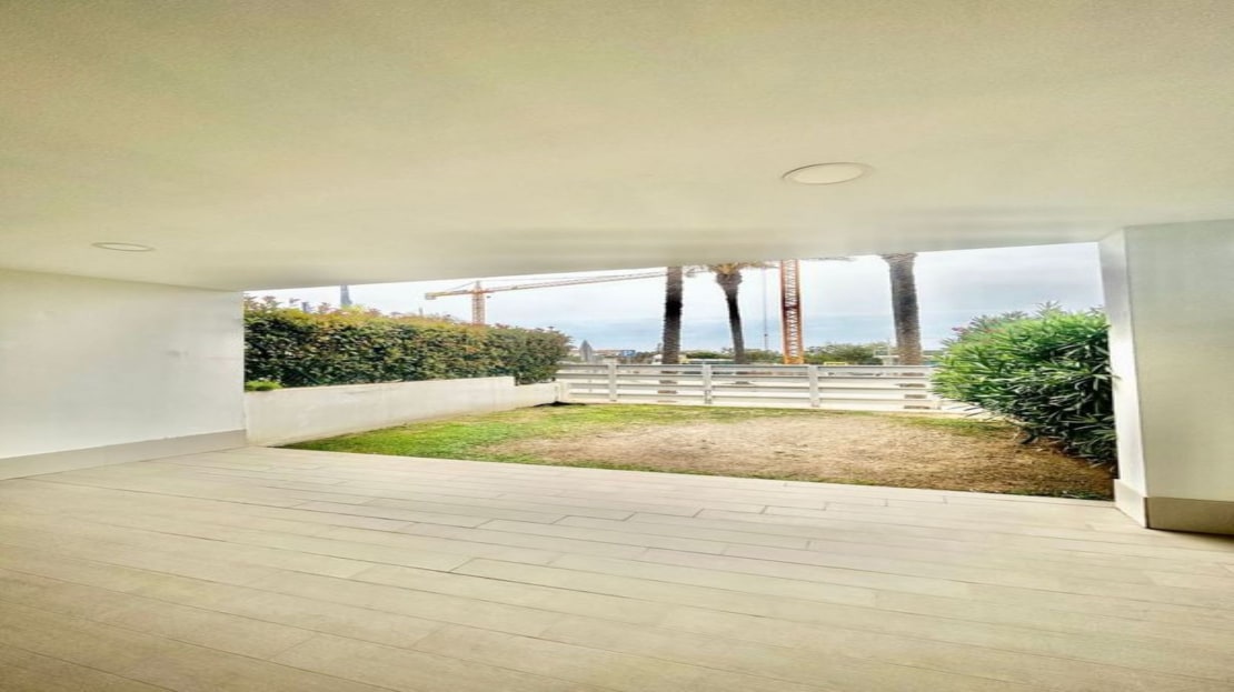 Featuring an open-plan living area that leads to a private 18 m² terrace and a 30 m² garden, this home is perfect for indoor-outdoor living. The fully equipped kitchen flows seamlessly into the living space. Both bedrooms have en-suite bathrooms and fitted wardrobes for ample storage.