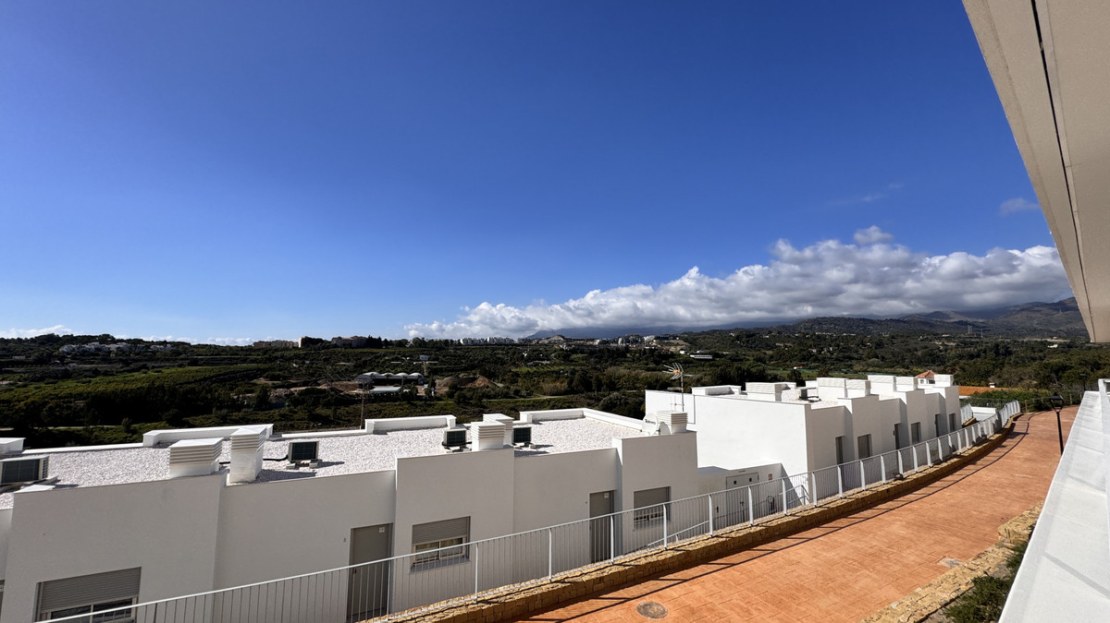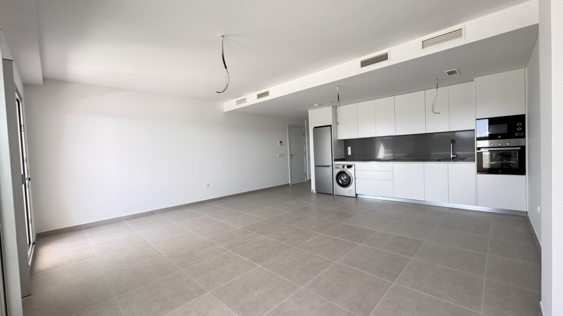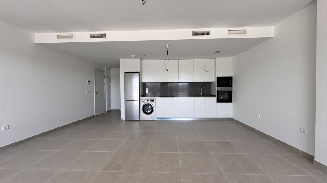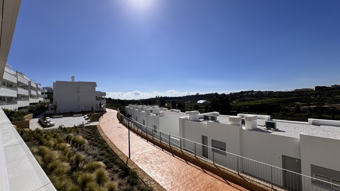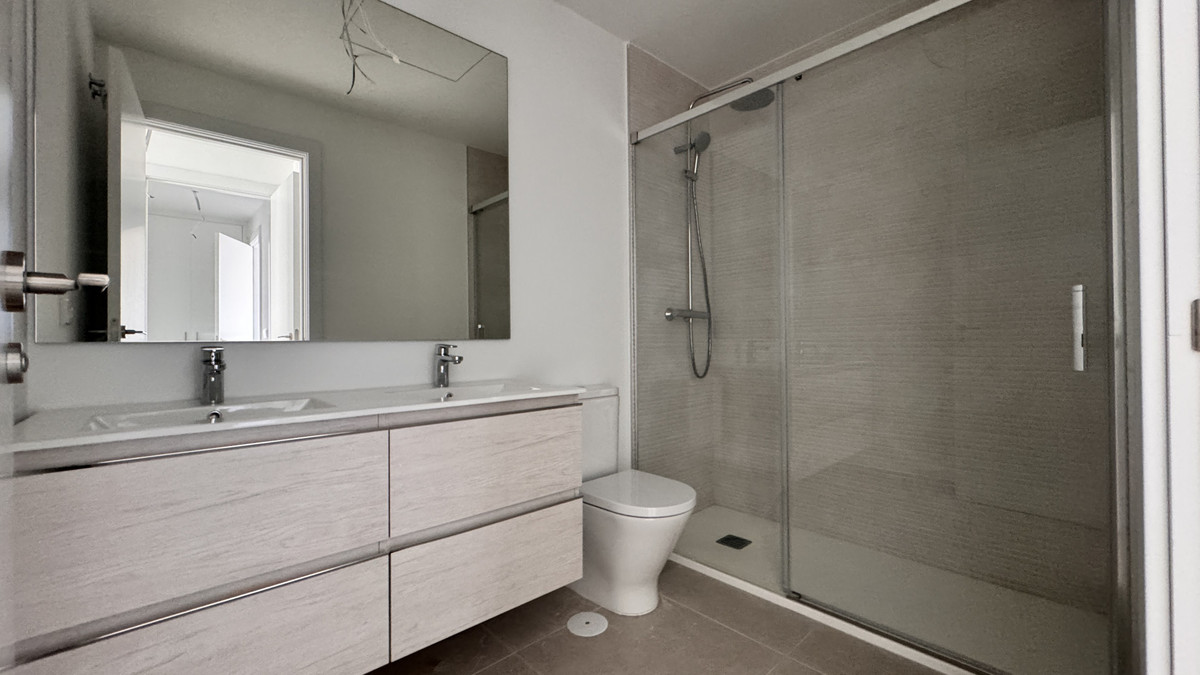 The open-plan kitchen seamlessly flows into the living area, creating an inviting space ideal for entertaining or relaxing. The master bedroom boasts an en-suite bathroom for added privacy, while the second bedroom and additional bathroom provide ample accommodation for guests or family.