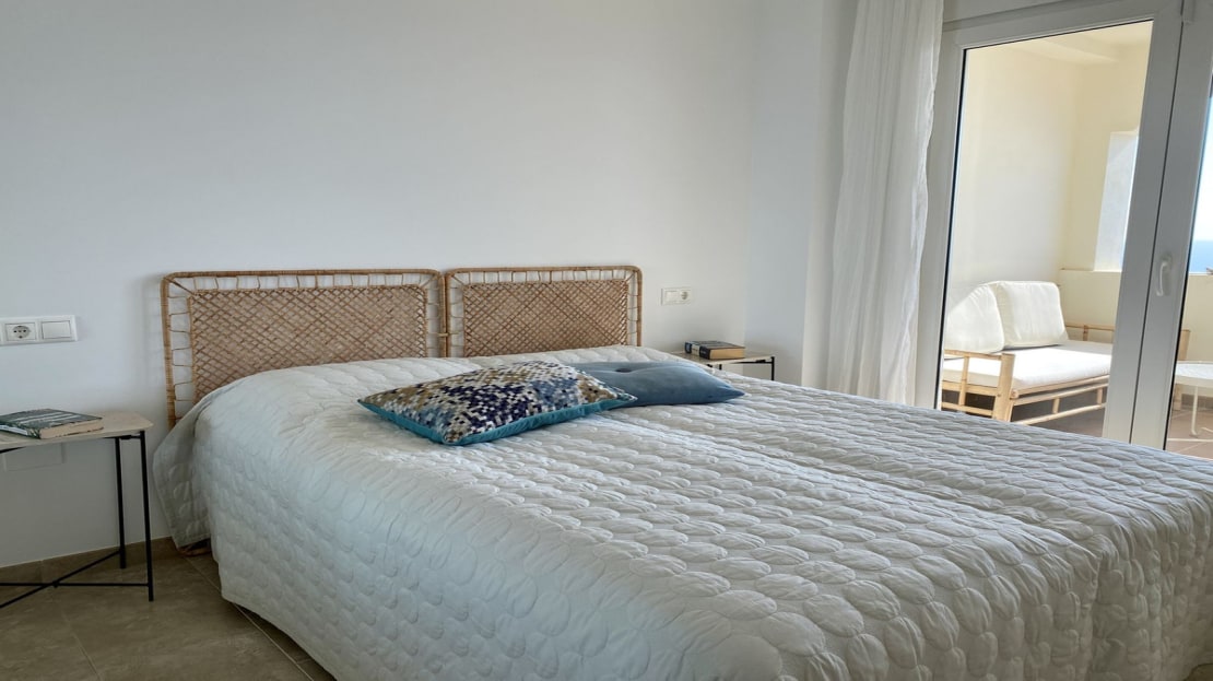 2 spacious bedrooms, both with fitted wardrobes. The master bedroom has sea views and direct access to the terrace.