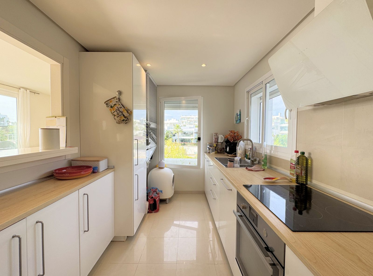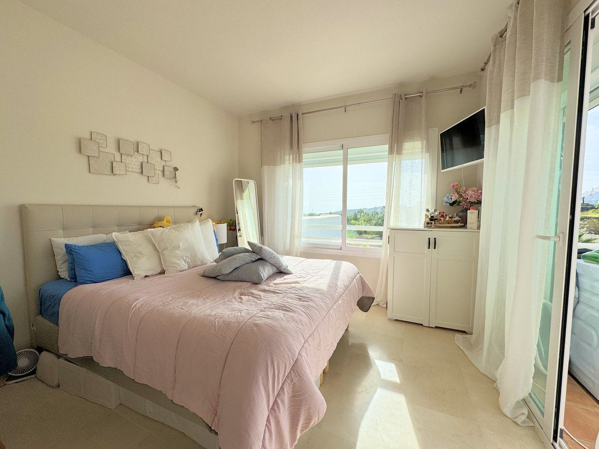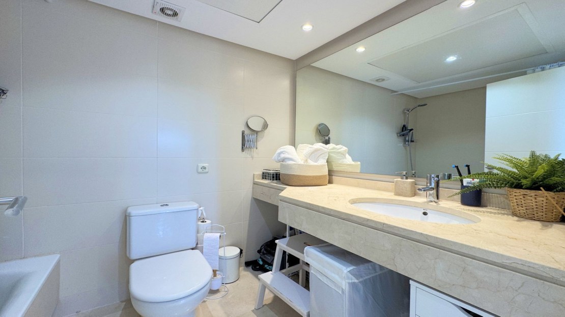 Discover this exclusive apartment located in Alcazaba Lagoon, a prestigious residential complex in Casares, surrounded by a unique natural setting. This privileged location features a stunning artificial crystal-clear lagoon, lush gardens, and panoramic views of the Mediterranean Sea and the mountains. Perfect for those seeking tranquility, luxury, and proximity to destinations like Marbella and Gibraltar. The property, distributed on a single floor, boasts two bedrooms and a modern, bright design with open spaces and large windows that maximize natural light and connect the living room, dining area, and kitchen, creating a perfect space for enjoying and entertaining. Its spacious south-facing terrace is ideal for outdoor dining, relaxing, or enjoying a barbecue while admiring unparalleled views of the Mediterranean and the mountains. Finished to the highest standards, it features marble floors, a kitchen equipped with modern appliances, built-in wardrobes, and luxurious bathrooms. In excellent condition, this property is ready to move into. The complex offers exclusive amenities such as pools surrounded by green areas, a gym, relaxation zones, children’s play areas, 24-hour security, and direct access to the crystal-clear lagoon, perfect for swimming and water sports. Additionally, the property includes a parking space and a storage room. Don’t miss the opportunity to live in this dream property where nature, luxury, and comfort come together. Visit it and fall in love with this Mediterranean paradise!