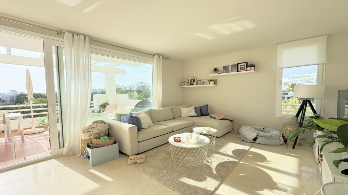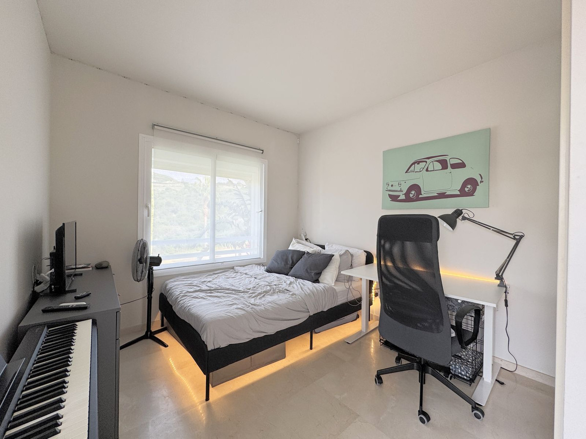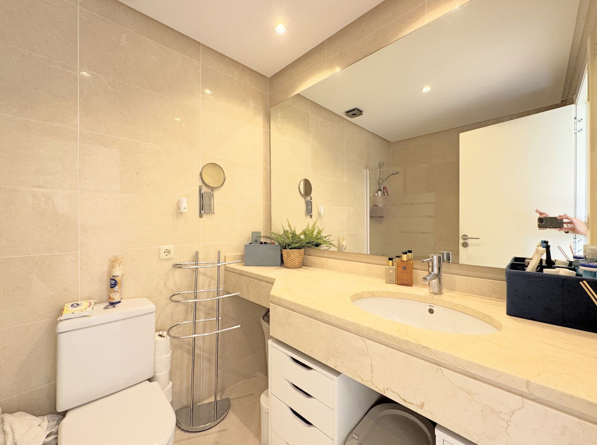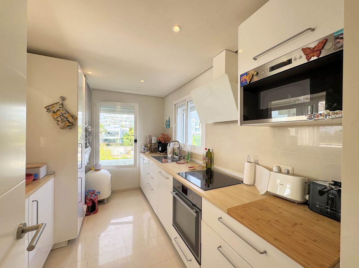 Discover this exclusive apartment located in Alcazaba Lagoon, a prestigious residential complex in Casares, surrounded by a unique natural setting. This privileged location features a stunning artificial crystal-clear lagoon, lush gardens, and panoramic views of the Mediterranean Sea and the mountains. Perfect for those seeking tranquility, luxury, and proximity to destinations like Marbella and Gibraltar. The property, distributed on a single floor, boasts two bedrooms and a modern, bright design with open spaces and large windows that maximize natural light and connect the living room, dining area, and kitchen, creating a perfect space for enjoying and entertaining. Its spacious south-facing terrace is ideal for outdoor dining, relaxing, or enjoying a barbecue while admiring unparalleled views of the Mediterranean and the mountains. Finished to the highest standards, it features marble floors, a kitchen equipped with modern appliances, built-in wardrobes, and luxurious bathrooms. In excellent condition, this property is ready to move into. The complex offers exclusive amenities such as pools surrounded by green areas, a gym, relaxation zones, children’s play areas, 24-hour security, and direct access to the crystal-clear lagoon, perfect for swimming and water sports. Additionally, the property includes a parking space and a storage room. Don’t miss the opportunity to live in this dream property where nature, luxury, and comfort come together. Visit it and fall in love with this Mediterranean paradise!