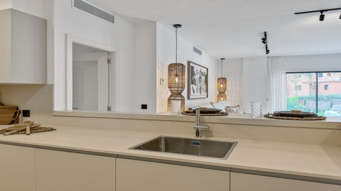 Discover this stunning ground floor corner unit in the sought-after Casares Golf. Boasting high-quality construction, this apartment features 2 spacious bedrooms and 2 modern bathrooms.