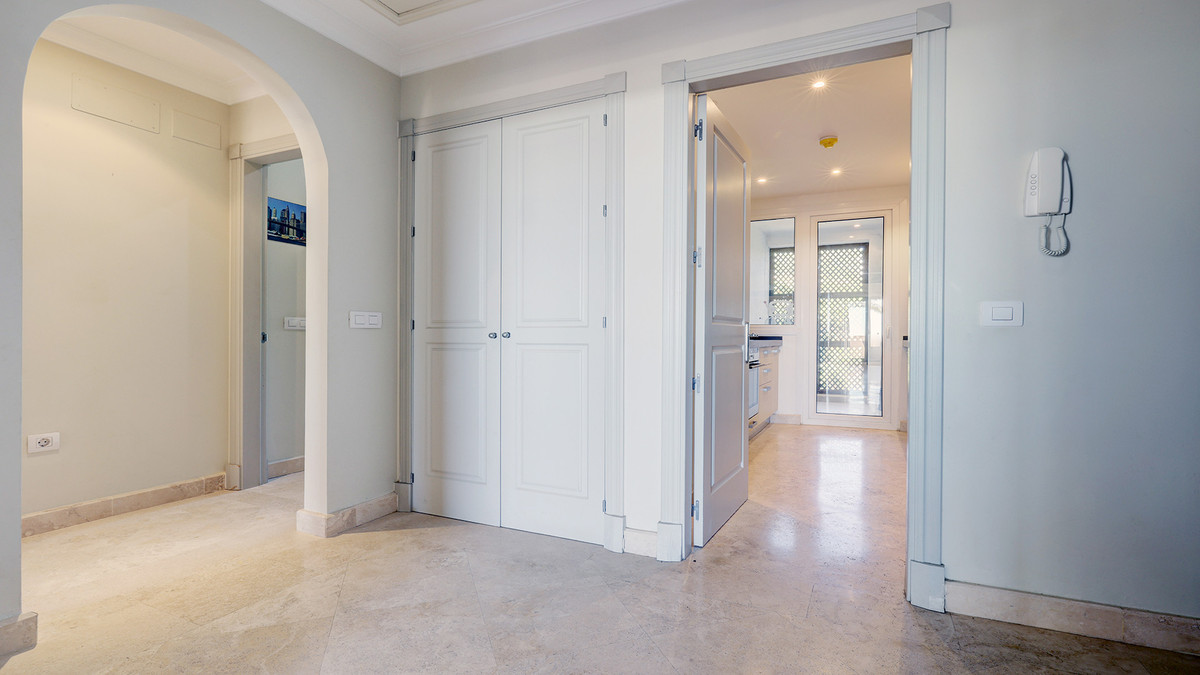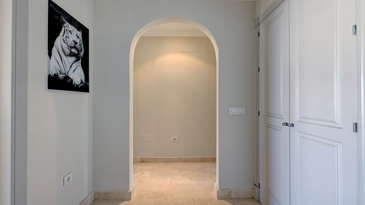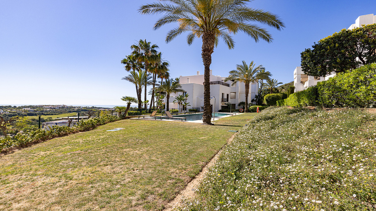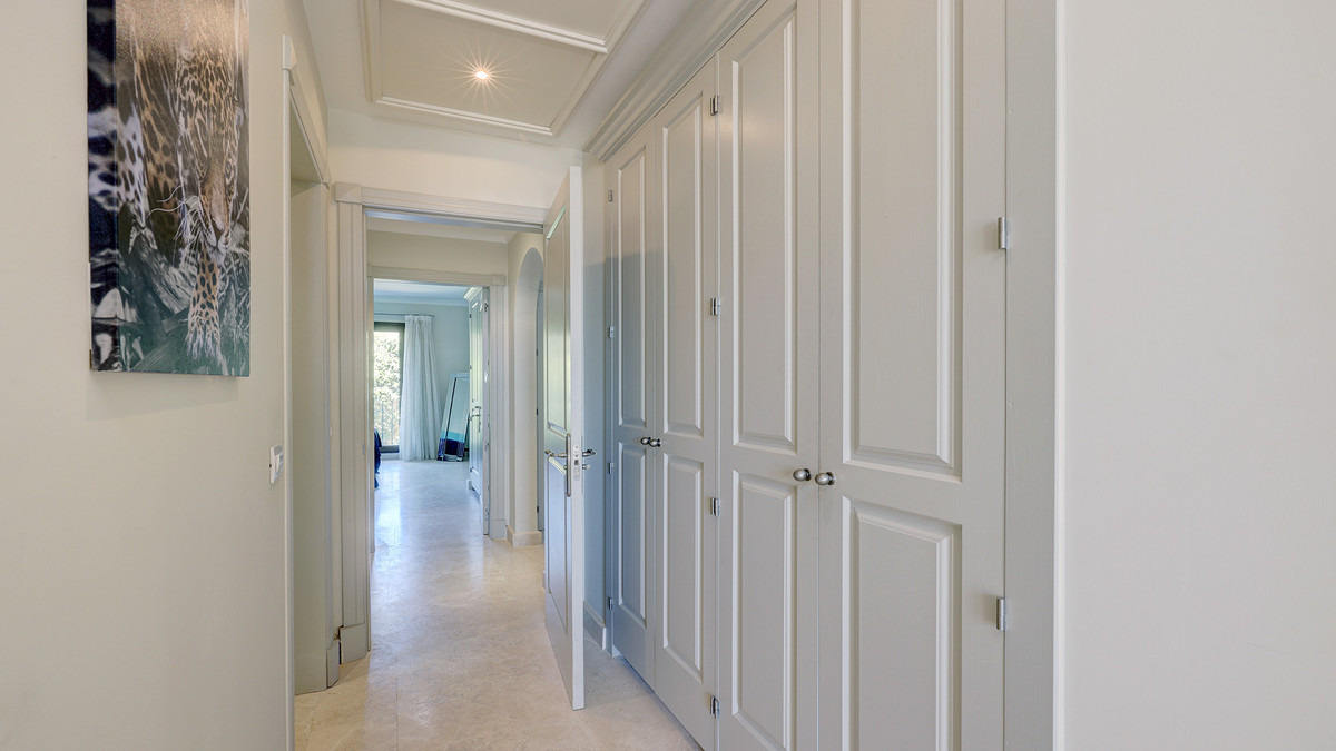 The apartment is part of a secure gated complex on the western side of The Finca Cortesin Hotel & Golf complex. This is an exclusive Andalucian-style development painted a brilliant white, giving the urbanisation a clean and elegant feel. The architects have worked hard to keep it in with the Andalucian theme and have presented a beautiful complex which fits in with its surrounding. There are lush gardens, beautiful flowers, mature palm trees and a feeling that you are in an oasis. The urbanisation has fabulous communal gardens and communal pools.