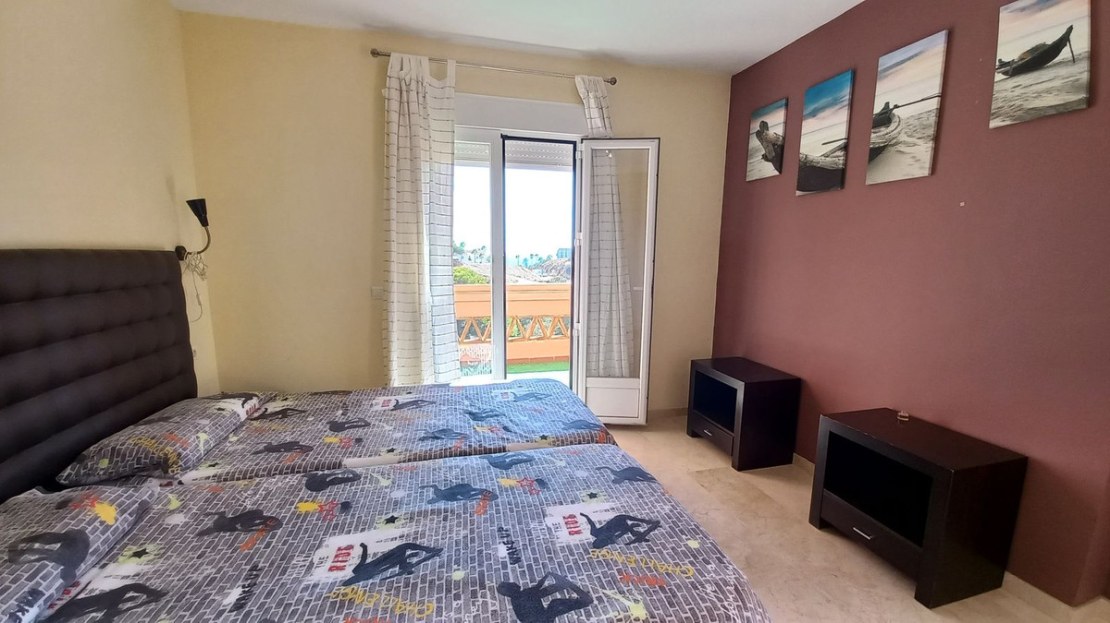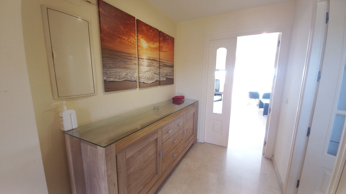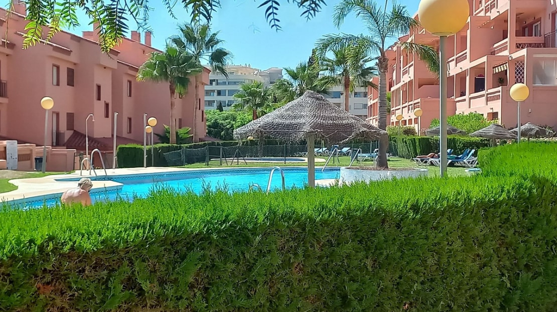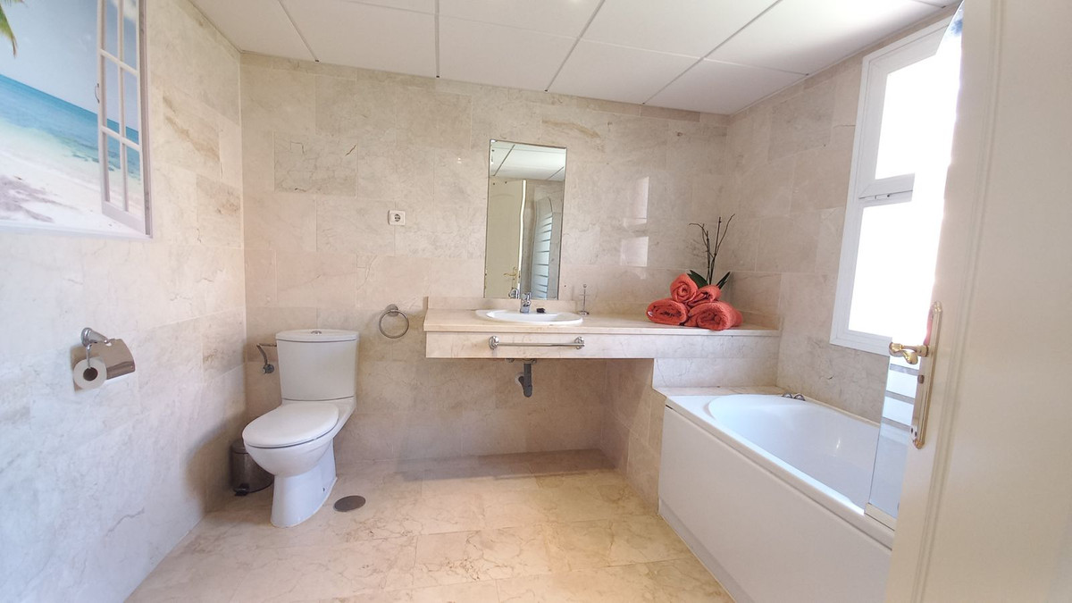 This spacious, two bedroom, two bathroom apartment is South facing guaranteeing sun all through the day, located in a gated complex close to El Chaparral and Playa Marina, El Faro.