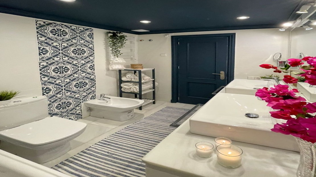As you enter the upper floor, you'll find a bright bedroom with its own terrace and a bathroom. The lower floor features a second spacious bedroom with terrace access, a fully equipped kitchen, and a sunlit living room that also opens to the terrace, providing easy indoor-outdoor living.