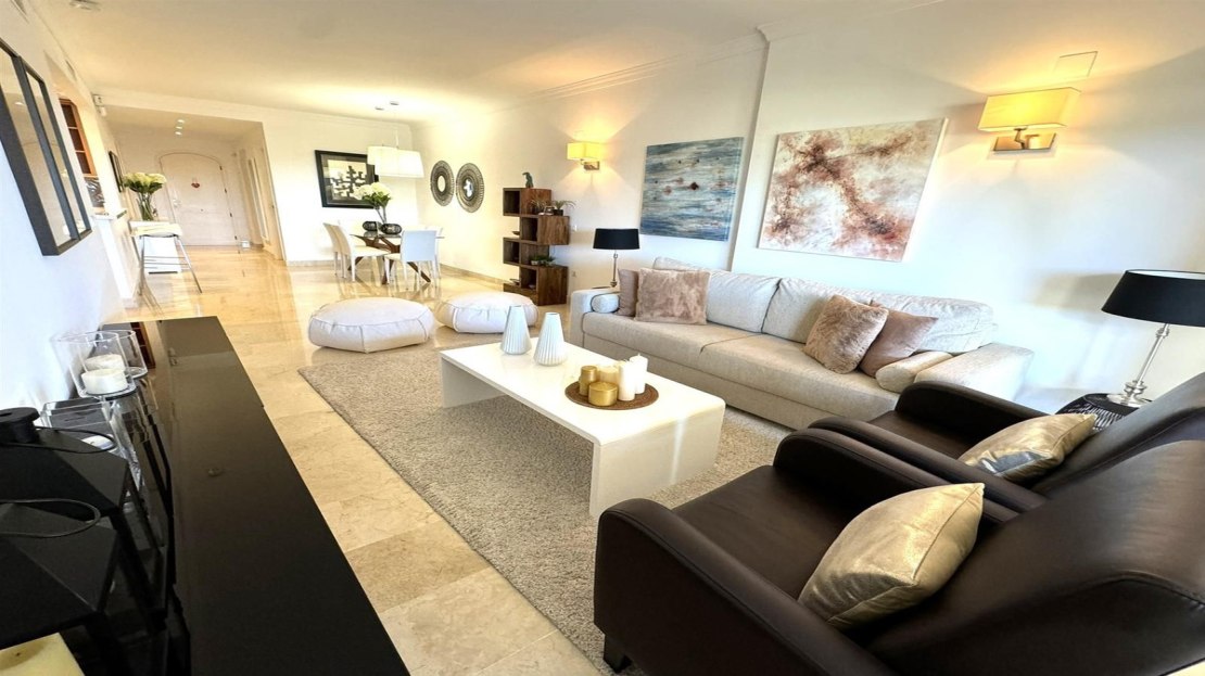 Nestled in a prestigious gated community in Elviria, this beautifully presented 2-bedroom, 2-bathroom apartment offers unparalleled sea views and a refined coastal lifestyle. The property boasts a stylish open-plan kitchen and living area, seamlessly extending to a spacious balcony that overlooks lush green hills and the sparkling Mediterranean. The property comes fully furnished. Located in the sought-after enclave of Elviria, renowned for its pristine white beaches, five-star hotels, and world-class dining, this exquisite residence is just 10 km from Marbella’s charming Old Town. Additional features include an underground parking space and a private storage room, ensuring convenience and security. A rare opportunity to own a luxurious retreat in one of Marbella’s most desirable locations.