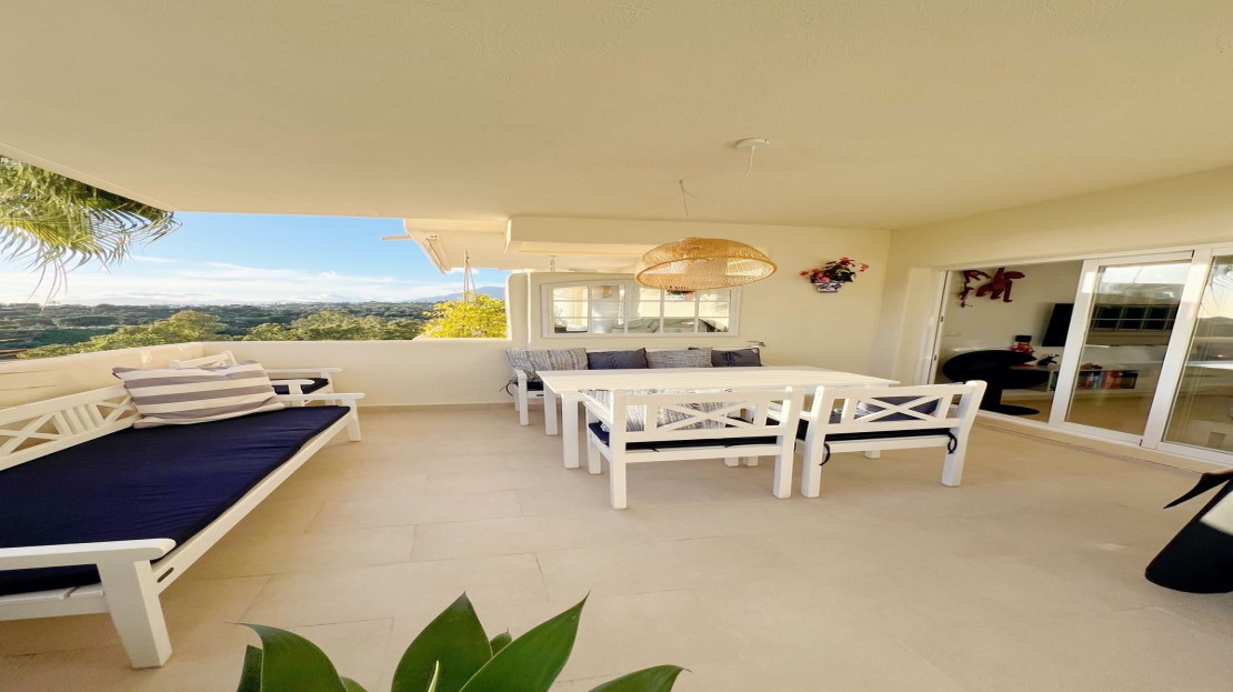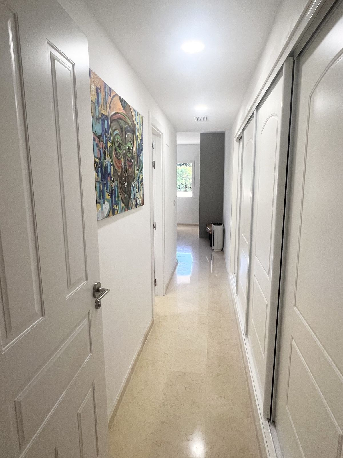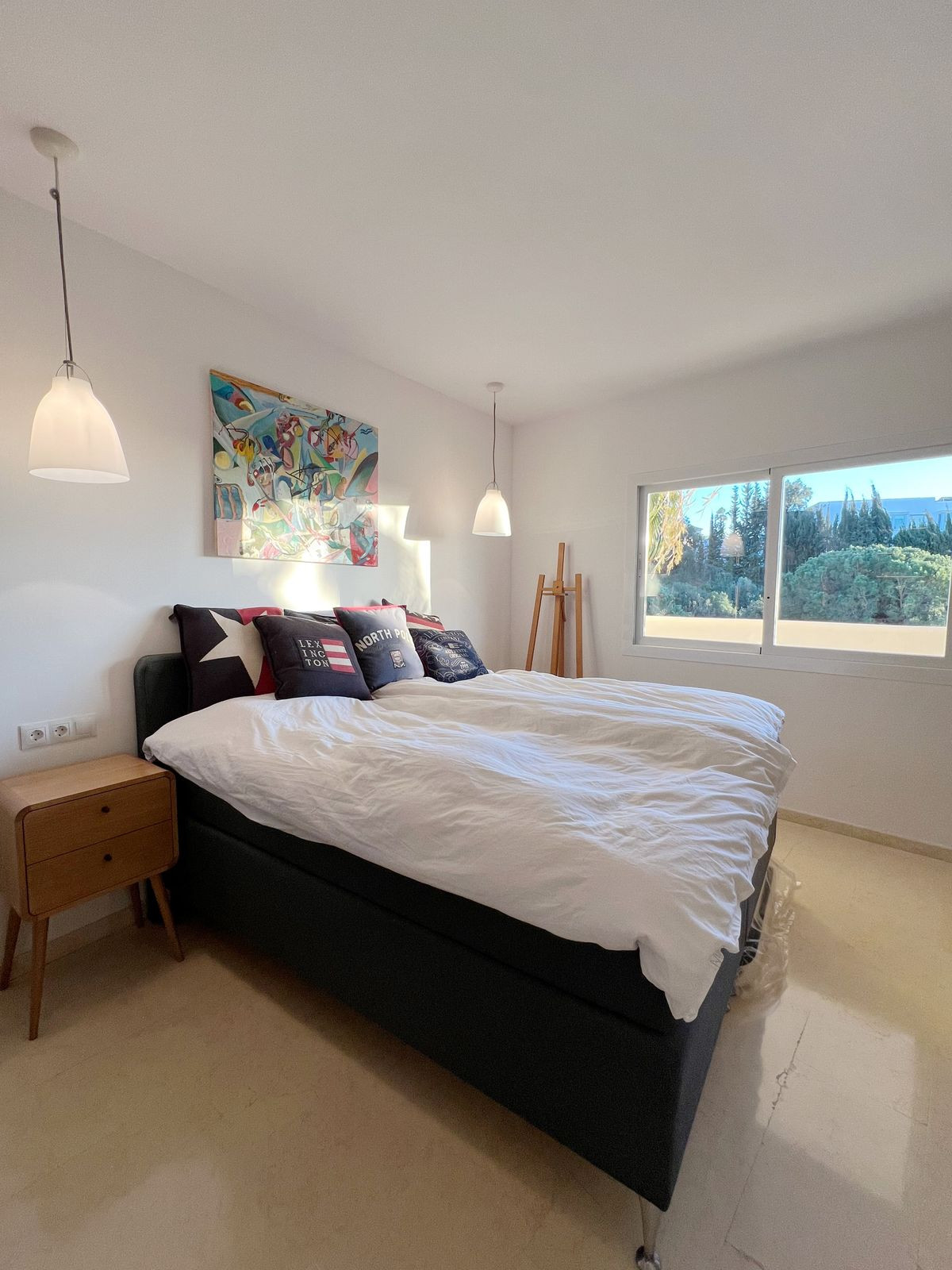There is a large parking space and storage room in the underground garage with elevator. The apartment is located in the renowned Santa Maria Green Hills urbanization, in Elviria, Marbella. This attractive development is just 5 min by car to the beach, 15-20 min flat walking.