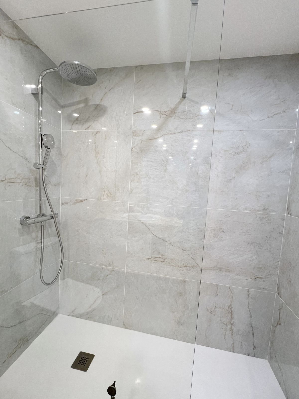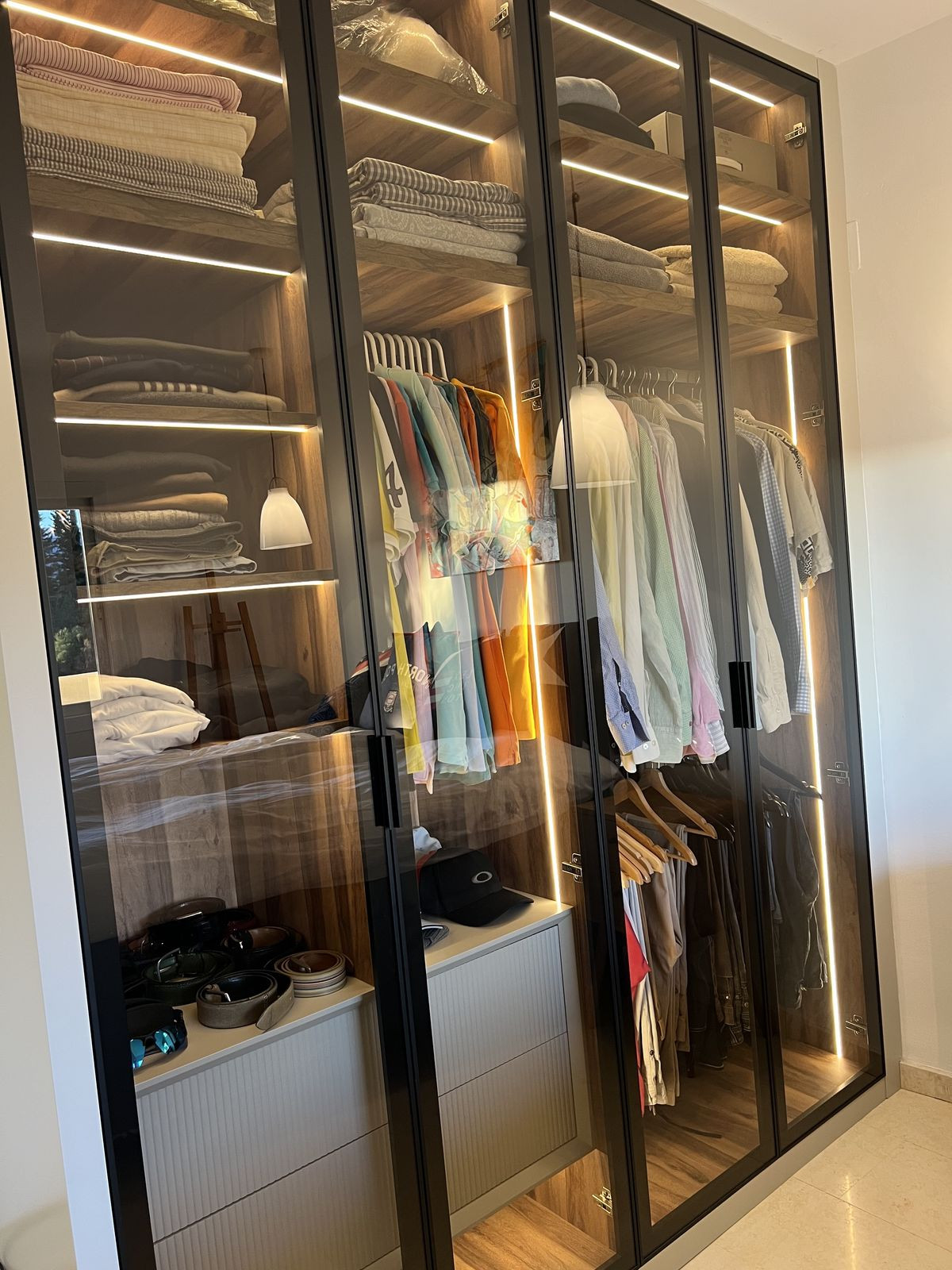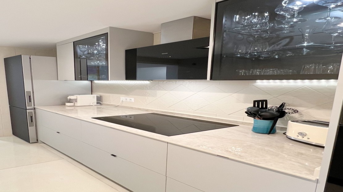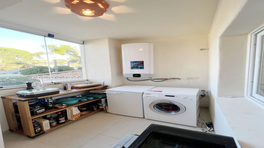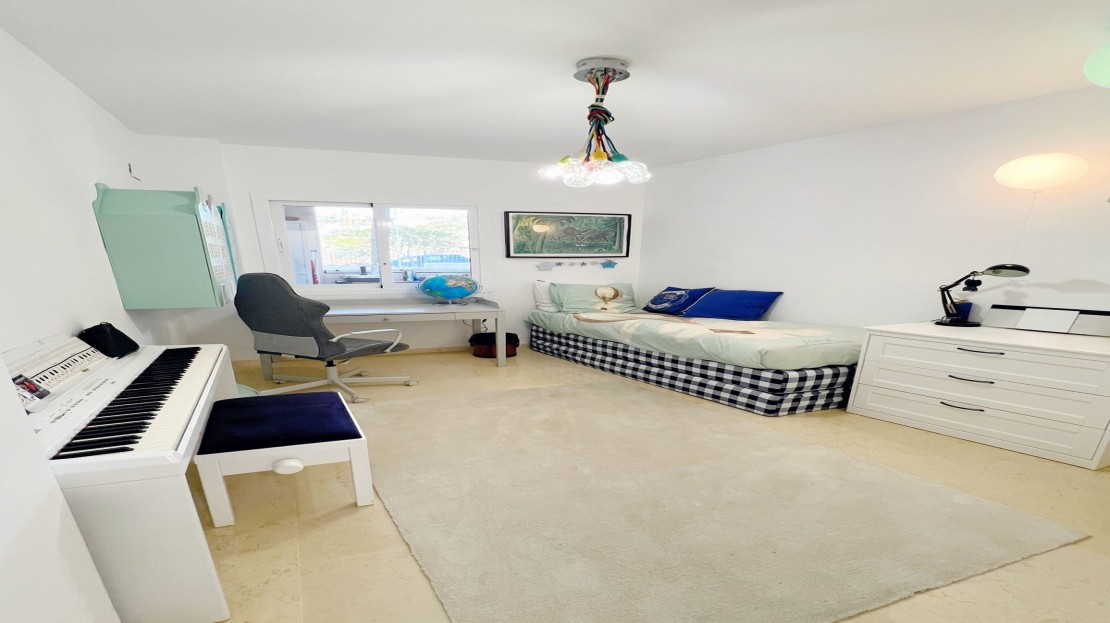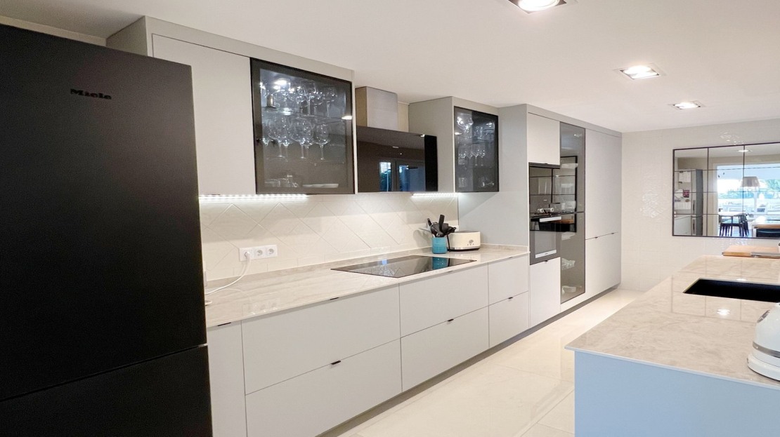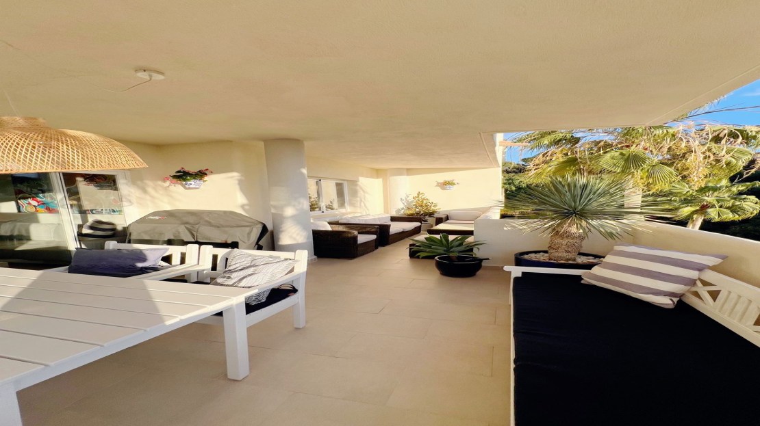 The master bedroom has brand new designer glass wardrobes (2x2m) with LED plus in the coridor 3,5m covered wardrobes. En-suite bathroom with a NEW walk-in spacious shower and heated mirror. The spacious bright living room opens onto a large terrace with beautiful sea views, extremely quiet and very private. The entire apartment is equipped with brand new air conditioning for both cooling and heating. The terrace has brand new tiles in light bright beige color.