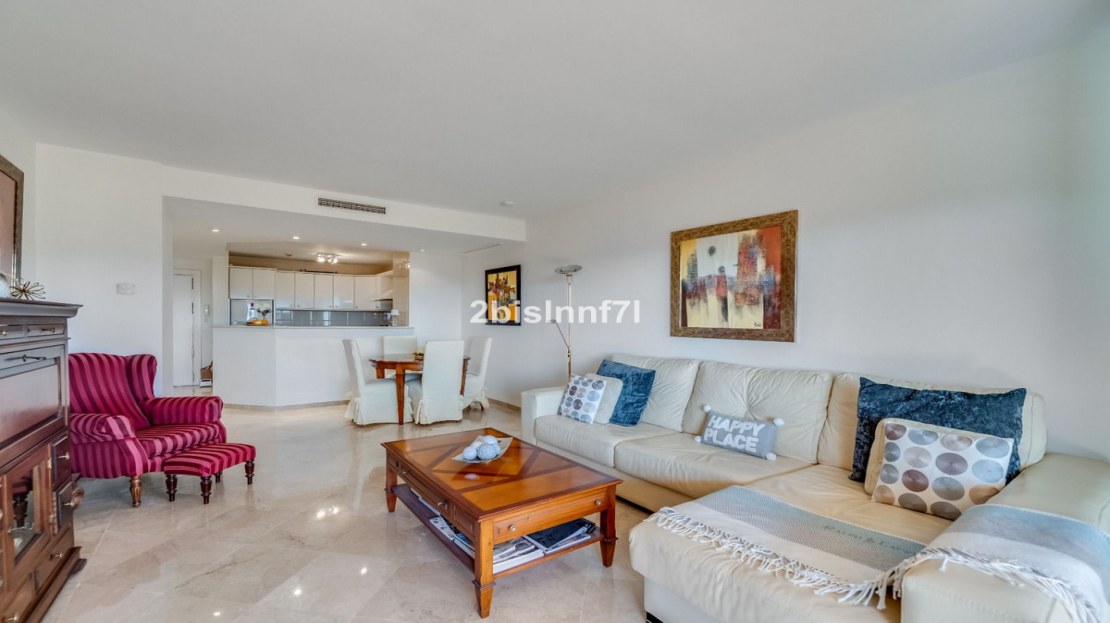 Beautiful first-floor apartment with fabulous sea views in Elviria, located in a well-known award-winning urbanization. This bright and spacious apartment is in pristine condition, having been meticulously maintained from the beginning. The property features two bedrooms and two bathrooms, and is distributed as follows: an entrance hall with built-in wardrobes; to the left, a fully equipped kitchen recently refurbished to a high standard that is partly open to the dining and living room; and to the right, a bathroom with a walk-in shower, which can also be used by guests. Continuing toward the front, you’ll find the dining room adjacent to the living room, with direct access to the terrace offering unobstructed sea views with green and golf views. This property is situated in a privileged location within the complex.