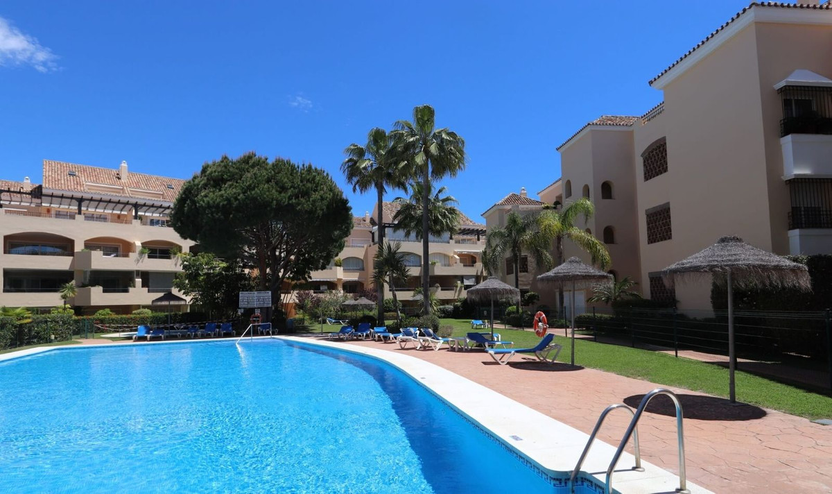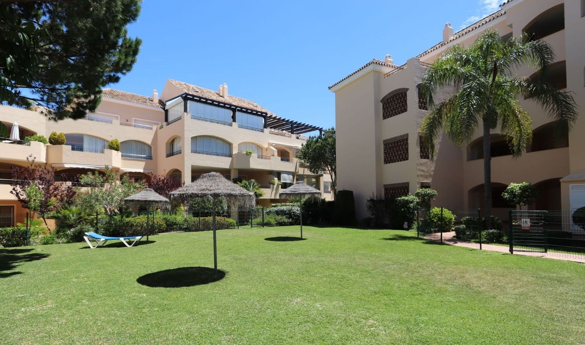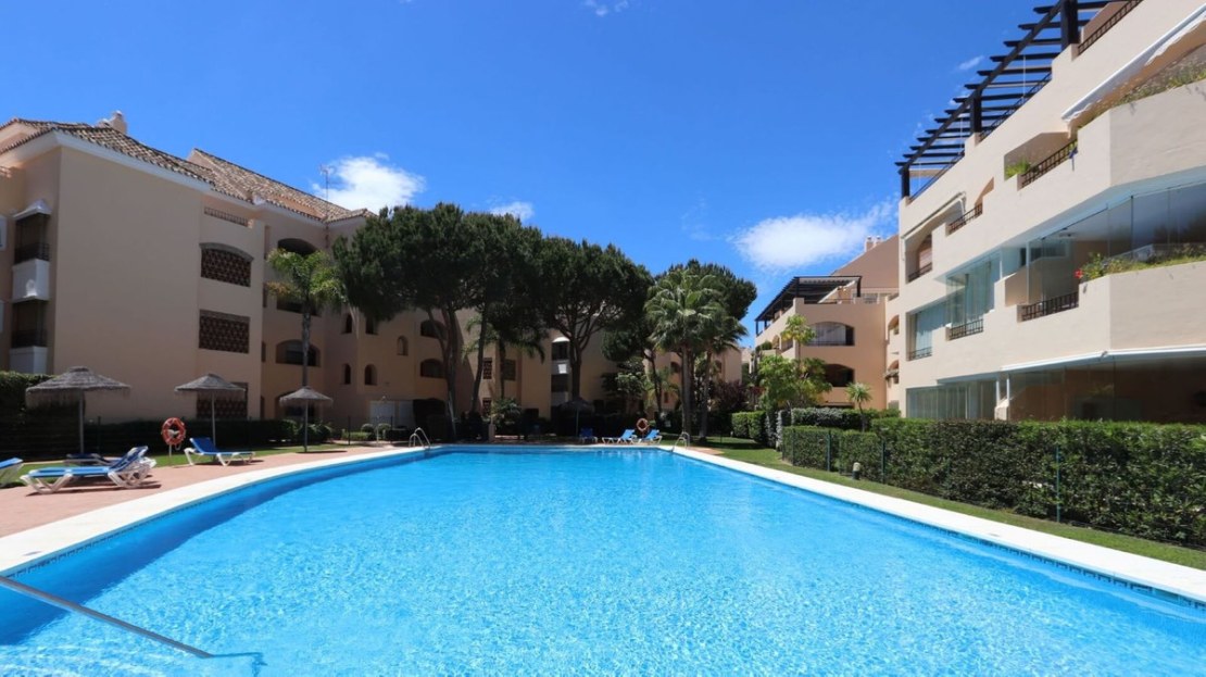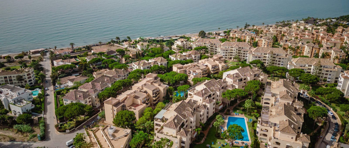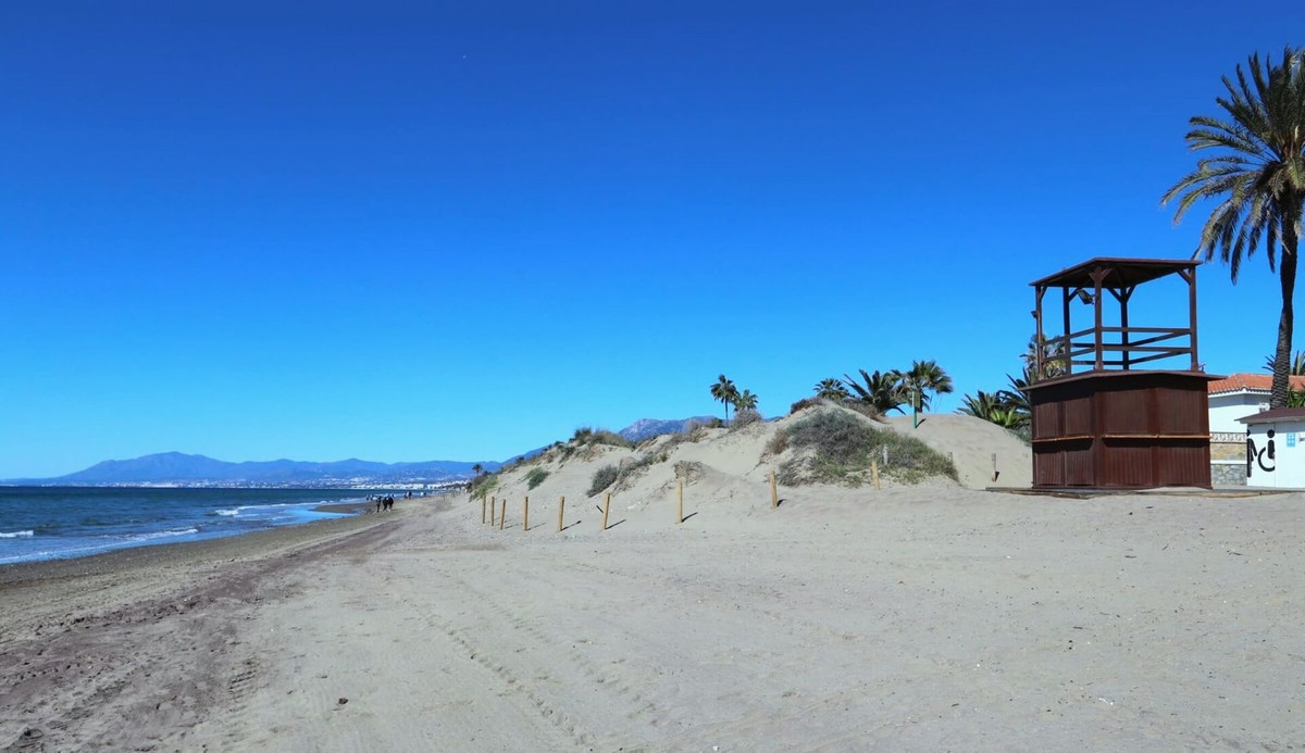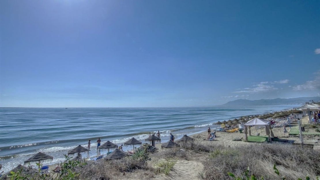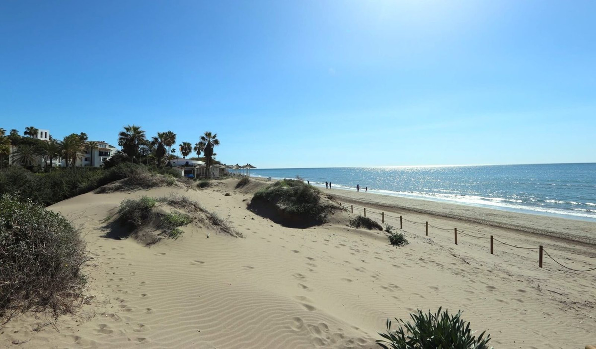 Excellent opportunity! Luxury apartment in one of the most sought after residential complexes in Elviria Hacienda Playa. The property is located walking distance to the beach (50 meters) and just a few steps from all services such as restaurants, banks, churches, schools, etc. This south facing apartment with a living area of ​​110 m2 + 42 m2 terrace consists of 2 bedrooms, 2 bathrooms, fully furnished and equipped kitchen, a large living room and a very sunny terrace. Air conditioning, hot / cold, Well maintained complex with communal gardens and pool. All this surrounded by beautiful tropical gardens. The apartment is in excellent condition and is very well maintained. An ideal option to enjoy life in Marbella right by the sea. The apartment includes an underground parking space and a basement room. 2 bedrooms, 2 bathrooms, living area 110 m2 + 42 m2 terrace, south facing. Built in 2002. This is the perfect home for a permanent holiday stay. Its position and features make it very attractive on the rental market.