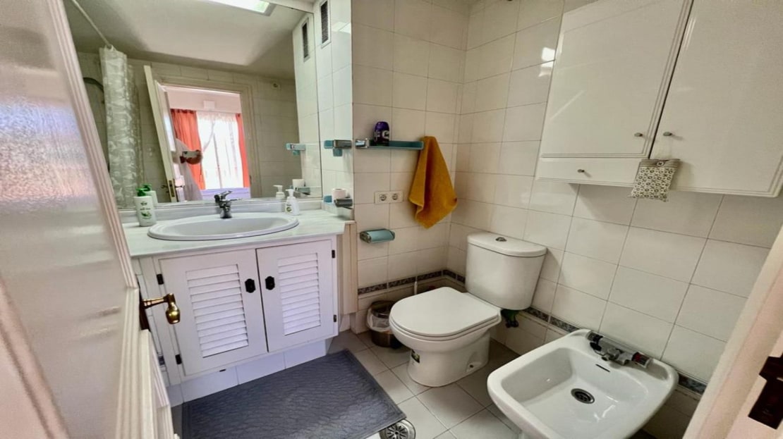 WONDERFUL SOUTH EAST FACING APARTMENT ON MIDDLE FLOOR IN THE BEST COMPLEX IN THE CENTRE OF ELVIRIA. SHORT DISTANCE TO ALL AMENITIES, TO SHOPS AND RESTAURANTS AND 10 MINUTE WALK TO THE BEACH. EASY ACCESS TO THE MAIN ROAD. IT CONSISTS OF TWO BEDROOMS, TWO BATHROOMS AND A LARGE UTILITY ROOM. NICE RENOVATED KITCHEN. COSY TERRACE WITH LOTS OF SUN, VERY PLEASANT AND WITH POSSIBILITY TO CLOSE WITH A PERGOLA ROOF AND GLASS CURTAINS TO TAKE ADVANTAGE OF IT DURING THE WINTER TIME. THE BLOCK HAS A LIFT. VERY WELL KEPT SPACIOUS GARDENS, THREE SWIMMING-POOLS (ONE HEATED), LIFEGUARD IN HIGH SEASON, TWO TENNIS COURTS AND CLUB/RESTAURANT. SECURITY CAMERAS IN THE COMPLEX. BARBECUE AREA AND PETANQUE.