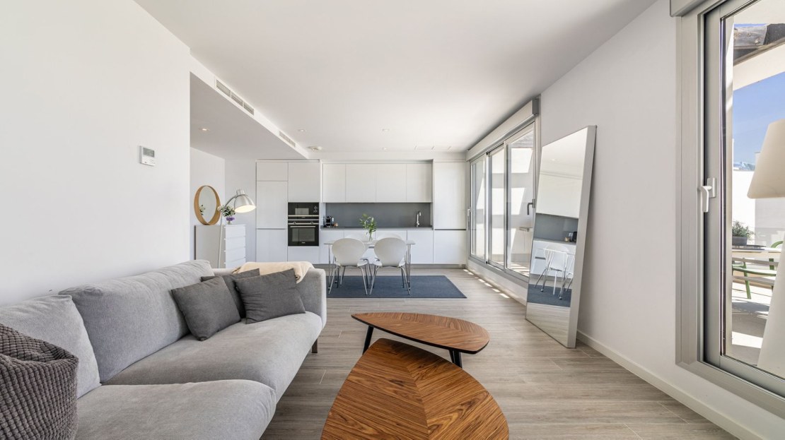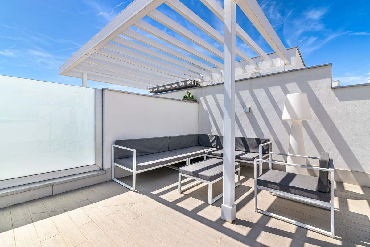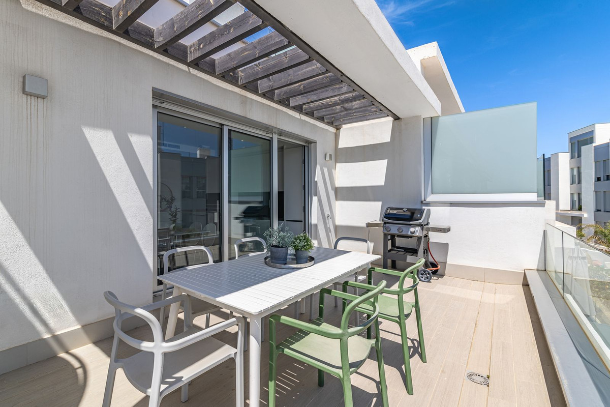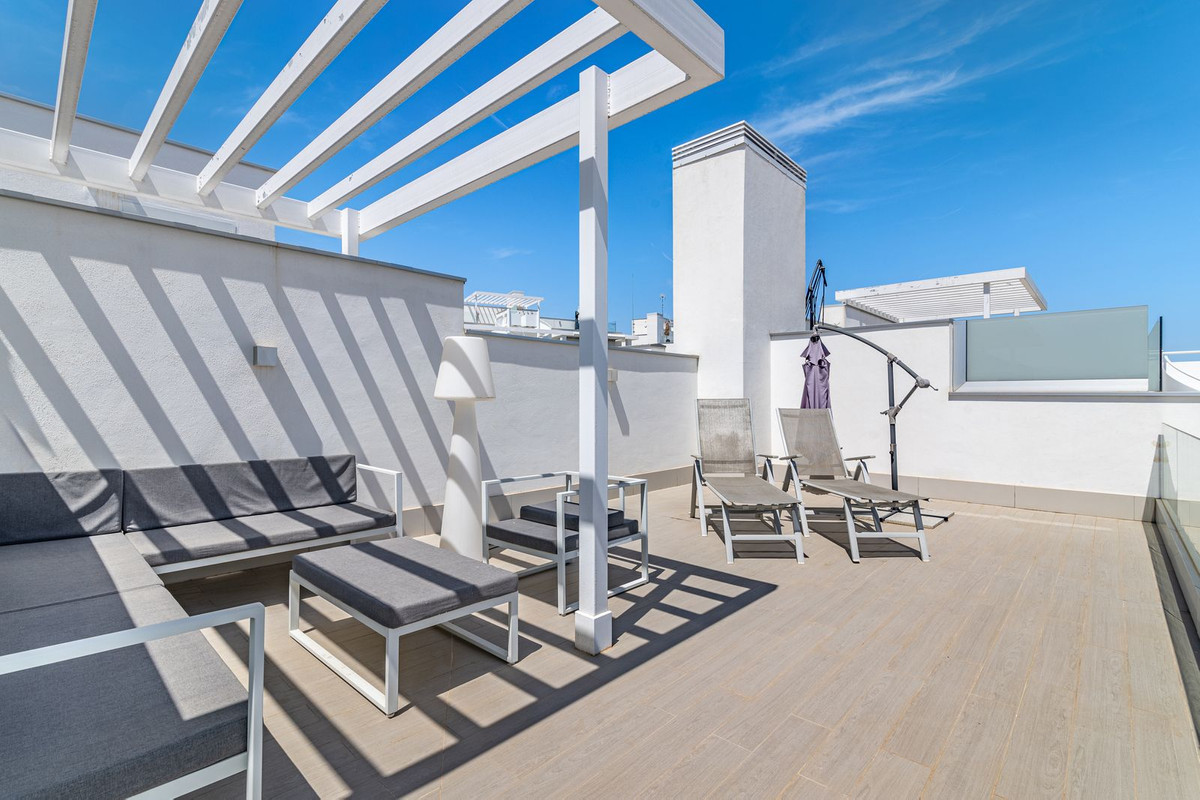 From the living room, you have direct access to a generous balcony, ideal for outdoor dinners and barbecues. The balcony leads further to an exclusive rooftop terrace that offers sun all day long. Here you will also find a stylish pergola that provides pleasant shade during the hottest hours.
