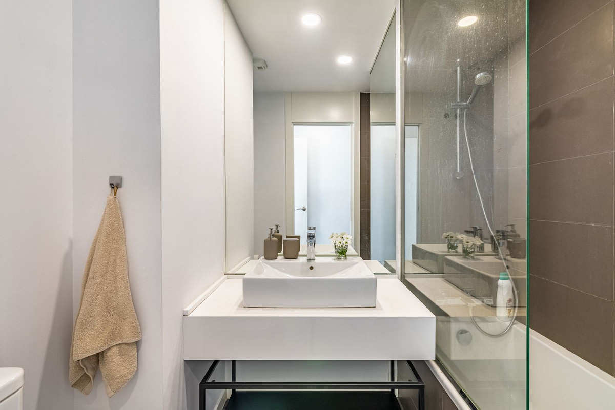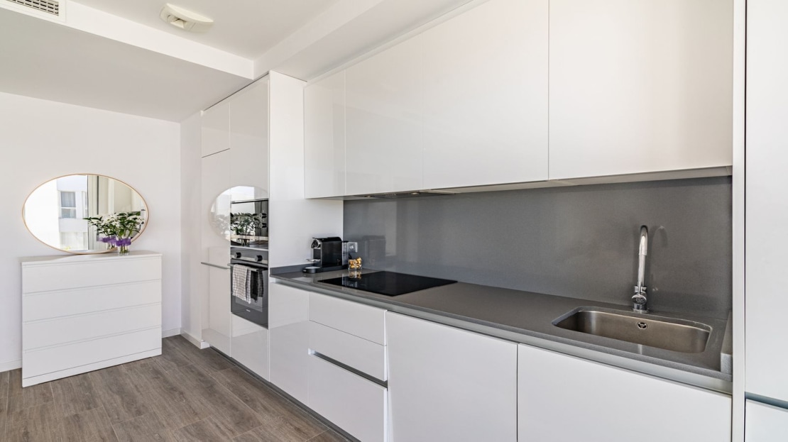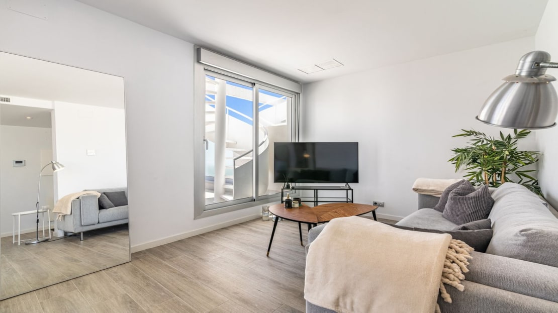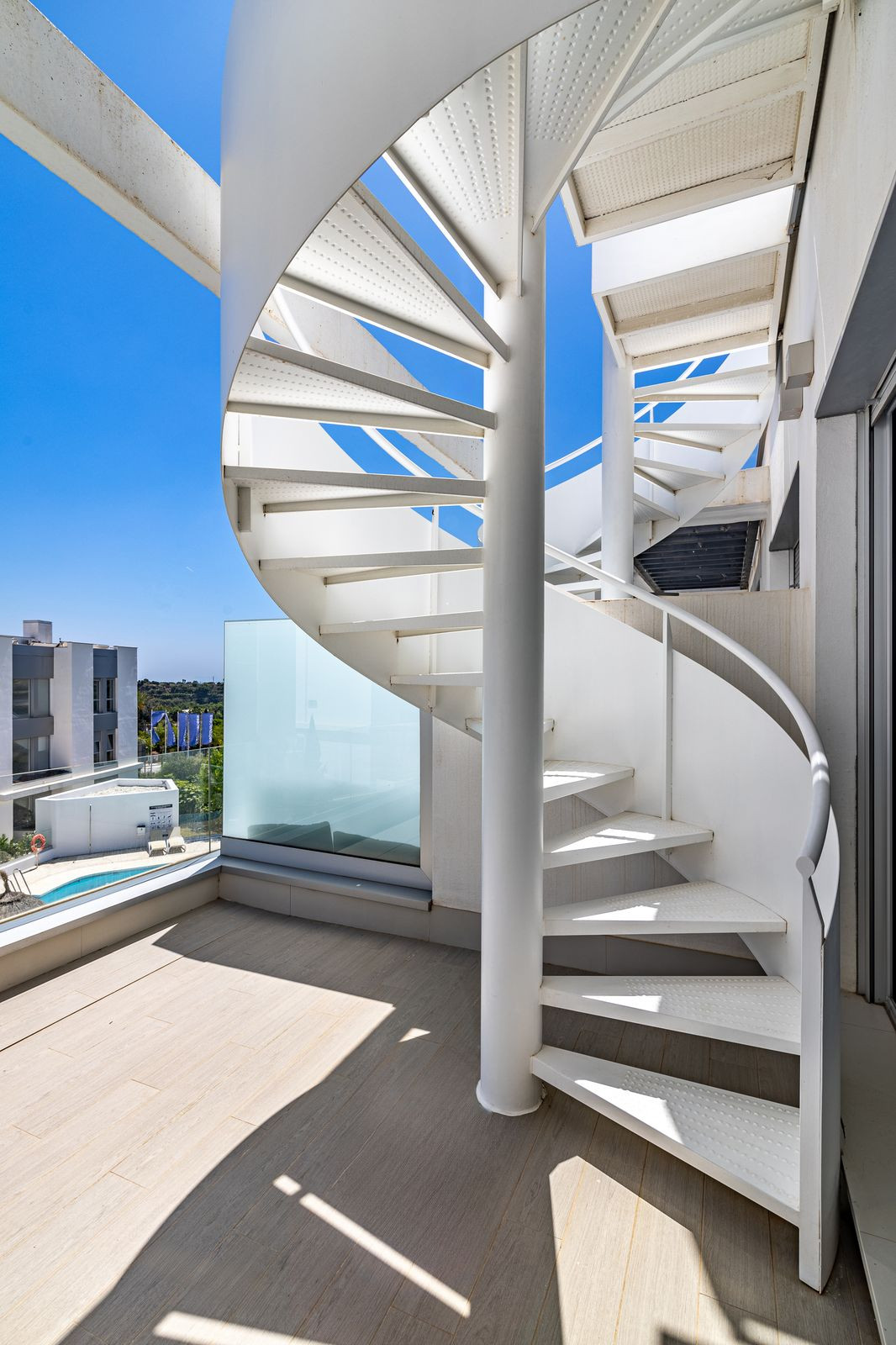 From the living room, you have direct access to a generous balcony, ideal for outdoor dinners and barbecues. The balcony leads further to an exclusive rooftop terrace that offers sun all day long. Here you will also find a stylish pergola that provides pleasant shade during the hottest hours.