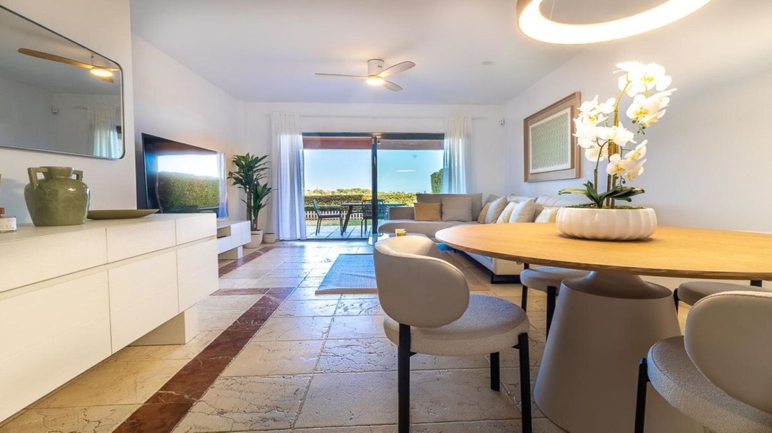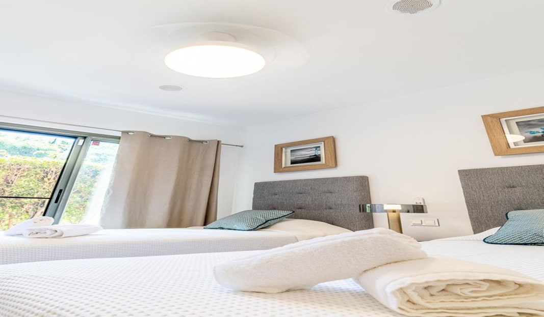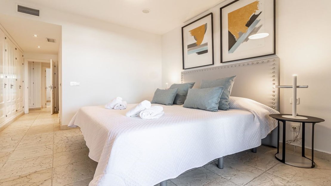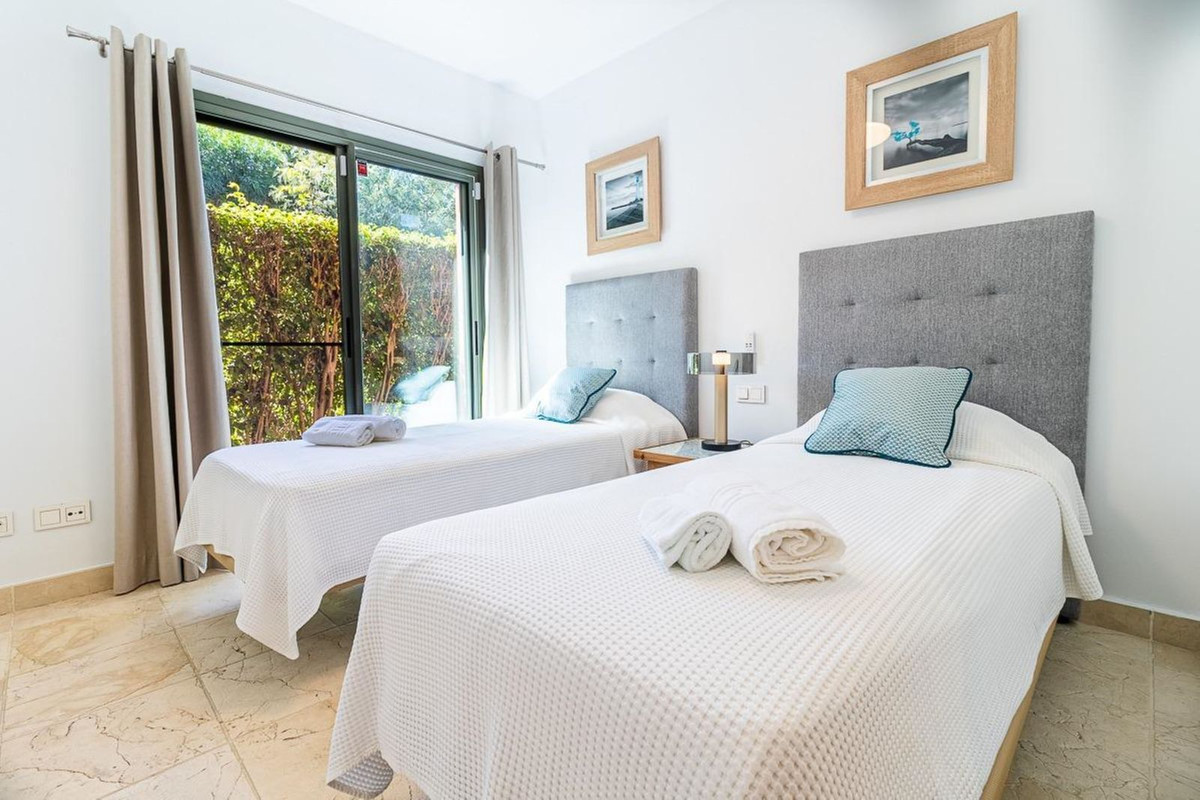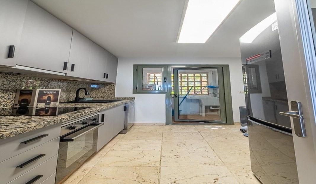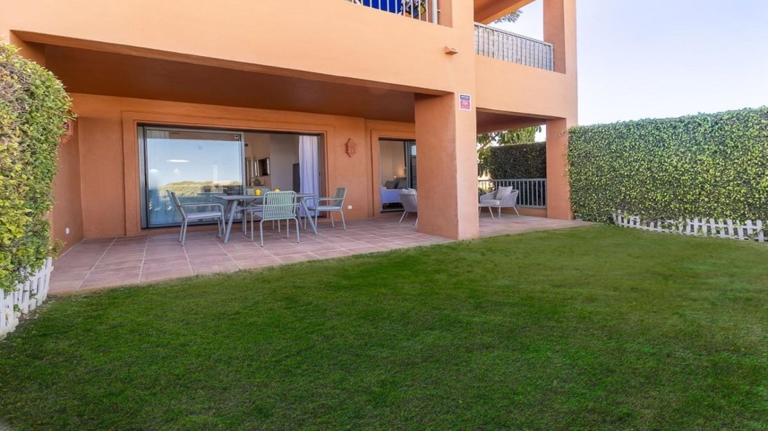 ground floor flat with sea views; two bedrooms, two bathrooms, one of them en suite, kitchen, laundry room, living room, terrace garden for private use. Included are TWO underground parking spaces and a storeroom.