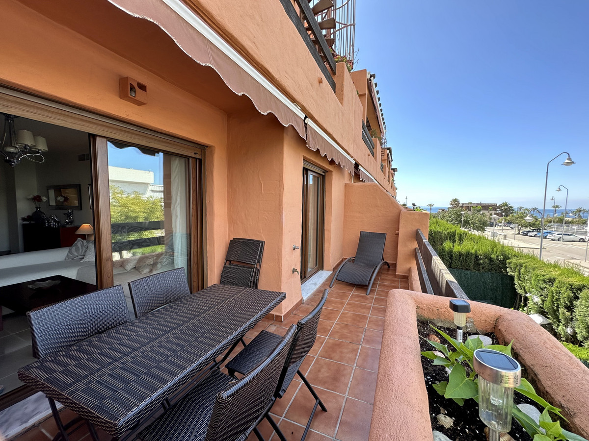 This flat, located in the prestigious Playa del Angel area of Estepona Town, Malaga, offers an unparalleled living experience. The property boasts two spacious bedrooms and two bathrooms, including an en-suite, spread across a built area of 104m² with an interior space of 99m². The flat is part of a sole agency listing, ensuring exclusive attention and service for potential buyers.