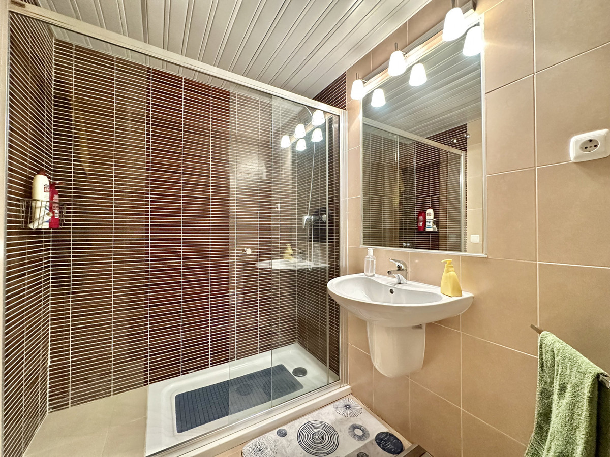 The flat is designed to provide maximum comfort and convenience. It comes fully furnished and features a fully fitted kitchen, marble floors, and individual air conditioning units. The property also includes a guest room, a guest toilet, and a laundry room, making it ideal for both family living and entertaining guests. The private terrace, which spans 12m², offers breathtaking sea and mountain views, perfect for enjoying the serene surroundings.
