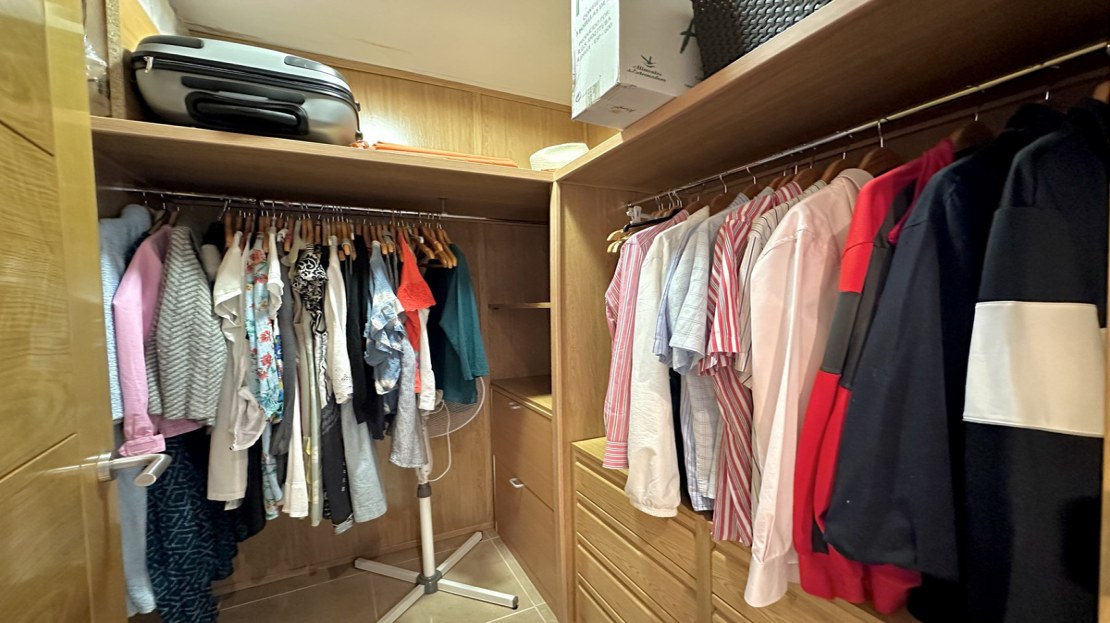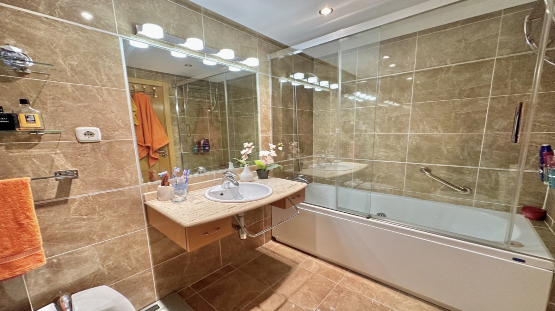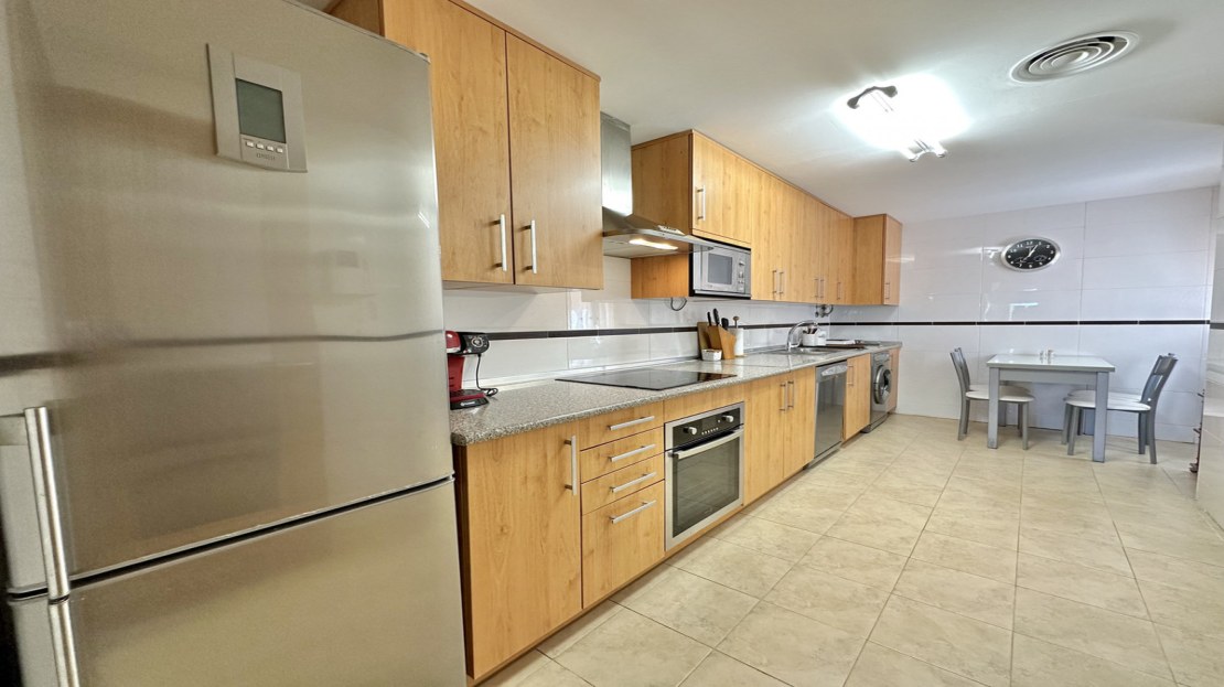 Residents of this flat will have access to a range of communal amenities, including a pool, garden, gym, and sauna. The property is situated in a gated community with a security entrance, ensuring a safe and secure environment. Additional features include fitted wardrobes, a storage room, and an armored door for added security. The building is equipped with a lift and offers communal garage parking.