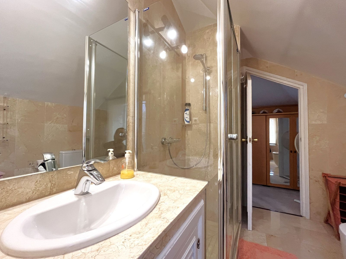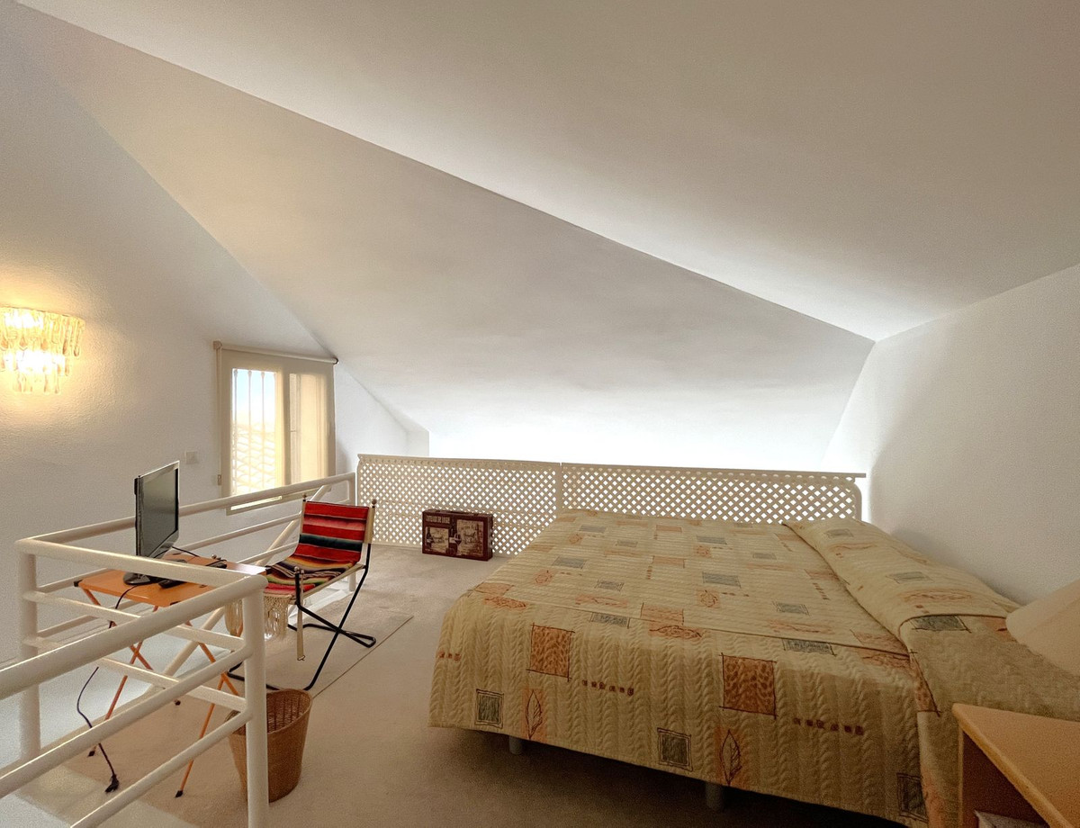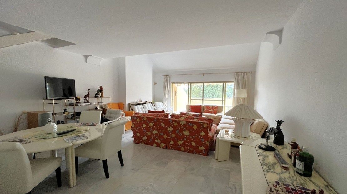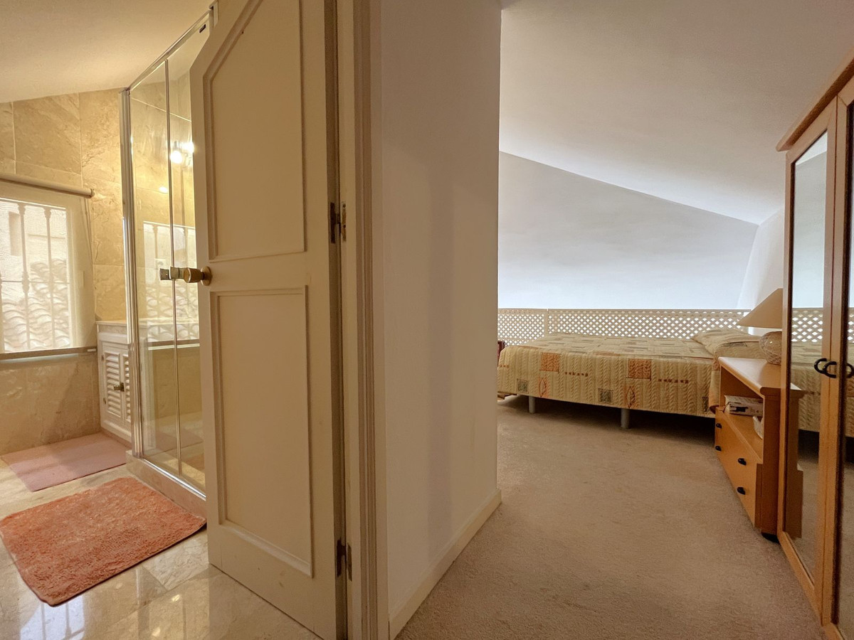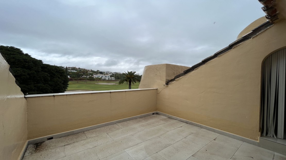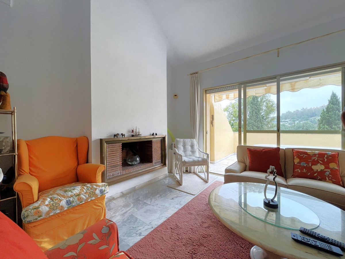 EXCELLENT TWO BEDROOM APARTMENT IN FIRST LINE GOLF! With excellent location, in an exclusive urbanization at the foot of the famous golf course Los Naranjos, and ONLY 10 MIN BY CAR FROM BANUS DEPUERTO BANUS AND 15 MIN FROM MARBELLA AND MALAGA AIRPORT 60KM. The property is located close to stores and stores. With SOUTHEAST ORIENTATION, to enjoy in its beautiful terrace with panoramic golf views and partial sea views. This apartment is very spacious, has a large entrance that leads to the hallway where the toilet is located, then we give the entrance to the spacious kitchen that has a terrace that has a small storage room, at the end of the hallway we find the spacious living room with fireplace and access to the terrace. This apartment has two bedrooms both with en suite bathrooms, one of them is located on the first floor, where it also enjoys a beautiful terrace overlooking the mountains and the golf course; the second bedroom is located on the top floor, has a bathroom with shower, fitted closets. The property has two parking spaces. The urbanization has beautiful gardens very well maintained, and three swimming pools, one of them heated and one for children. GREAT OPPORTUNITY FOR GOLF LOVERS!