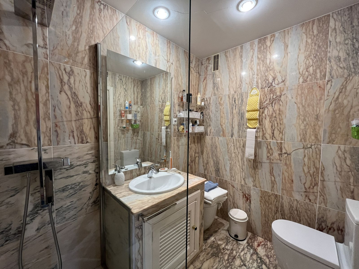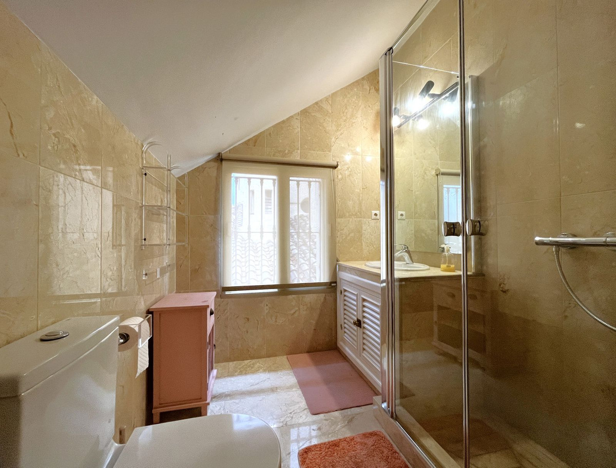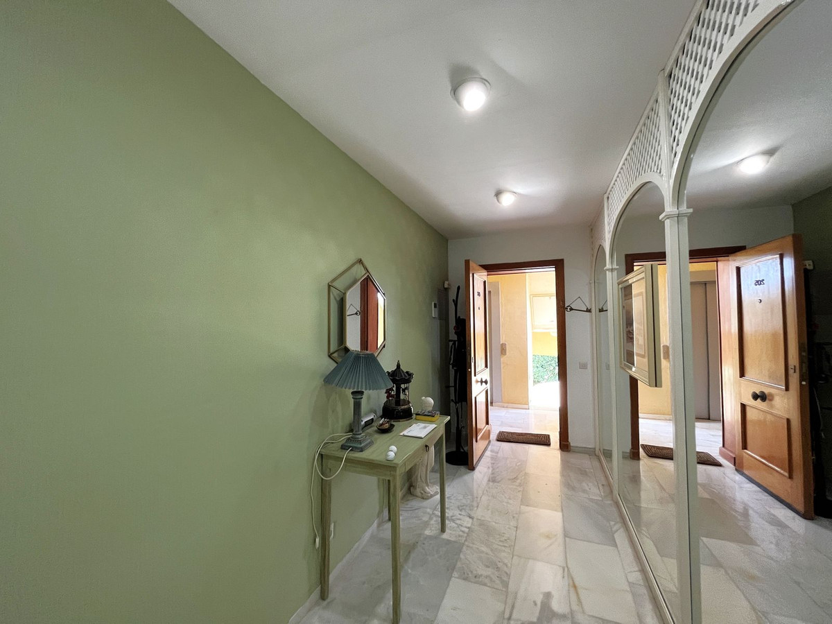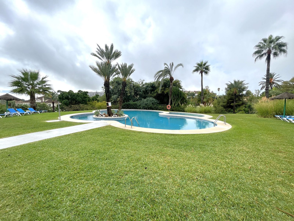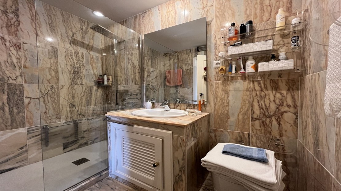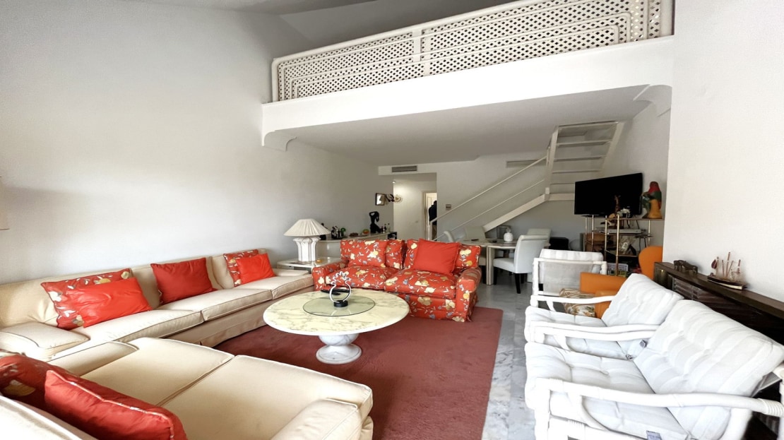 EXCELLENT TWO BEDROOM APARTMENT IN FIRST LINE GOLF! With excellent location, in an exclusive urbanization at the foot of the famous golf course Los Naranjos, and ONLY 10 MIN BY CAR FROM BANUS DEPUERTO BANUS AND 15 MIN FROM MARBELLA AND MALAGA AIRPORT 60KM. The property is located close to stores and stores. With SOUTHEAST ORIENTATION, to enjoy in its beautiful terrace with panoramic golf views and partial sea views. This apartment is very spacious, has a large entrance that leads to the hallway where the toilet is located, then we give the entrance to the spacious kitchen that has a terrace that has a small storage room, at the end of the hallway we find the spacious living room with fireplace and access to the terrace. This apartment has two bedrooms both with en suite bathrooms, one of them is located on the first floor, where it also enjoys a beautiful terrace overlooking the mountains and the golf course; the second bedroom is located on the top floor, has a bathroom with shower, fitted closets. The property has two parking spaces. The urbanization has beautiful gardens very well maintained, and three swimming pools, one of them heated and one for children. GREAT OPPORTUNITY FOR GOLF LOVERS!