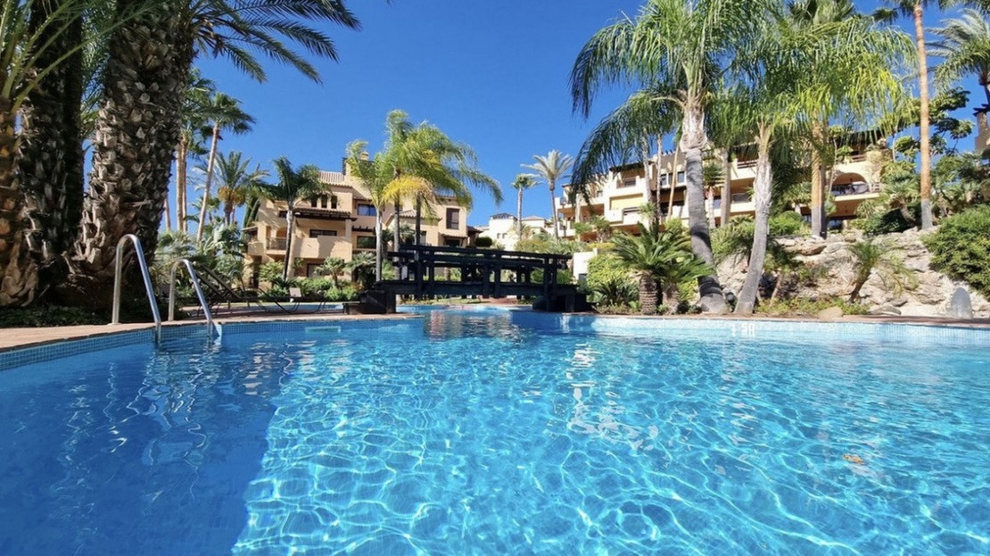 This second floor apartment is located in the luxury development of El Campanario, in Estepona, offering a privileged location and a quiet residential environment.