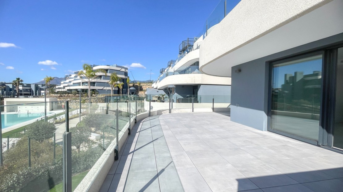 This is a fantastic opportunity to acquire a brand-new Apartment with big private terrace of 38m2 and Sea Views. The sought after South orientation selected especially by the owner ensures the living area is filled with light which seamlessly blends with the terrace creating a feeling of even more light. Dine al fresco and enjoy the outdoor ambience. Get creative in the modern and fully equipped kitchen with plenty of work space, there’s even a separate laundry/storage room. The two bedrooms are completed with built-in wardrobes providing plenty of storage options. The master bedroom leads directly to the terrace and of course has an en-suite bathroom for total privacy. The new phase of Oasis 325 has a smooth modern design featuring an elevated position which allows beautiful views from the lower floors and this apartment especially offers great community garden and sea views from the first floor. The main community garden is beautifully manicured and boasts a generous outdoor pool with lounge area. The indoor communal area has a refined resort-like atmosphere with fully equipped Gym, indoor pool and co-working space. Sold unfunished. The development is entirely sold out so enquire now.