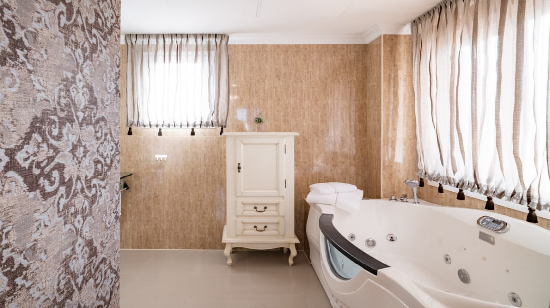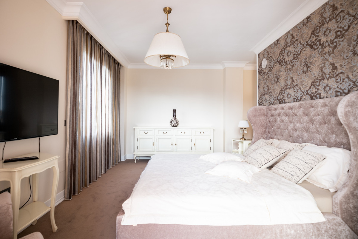 The terrace is private, sunny and offers both covered and uncovered areas to lounge in. The views draw your gaze out across the gardens and over to the immense swimming pool in the grounds below. This terrace offers an outdoor kitchenette and is the perfect area to entertain family and friends on lazy summer evenings.