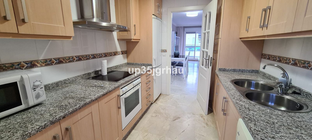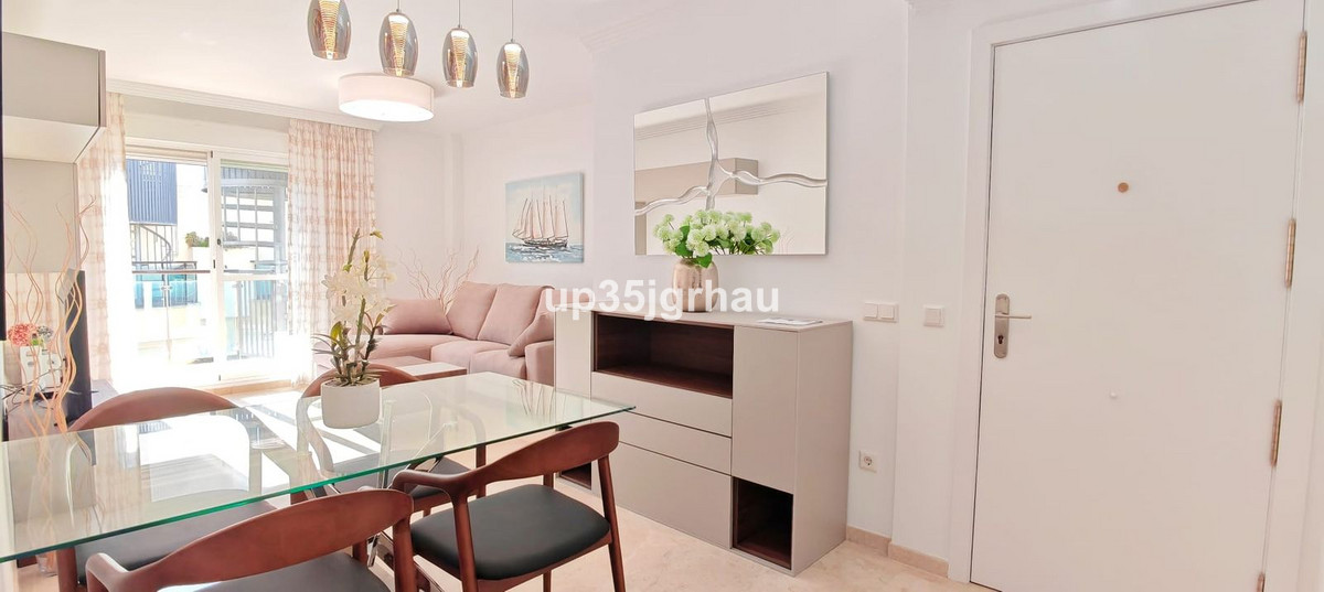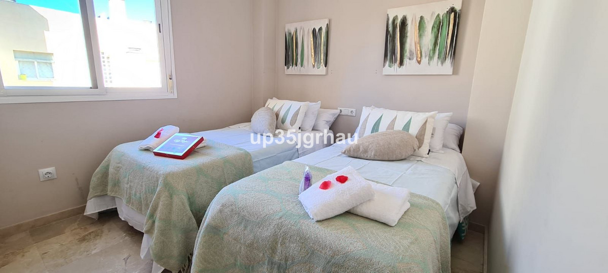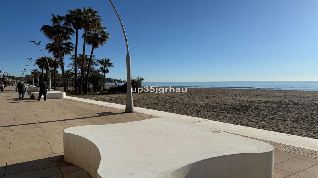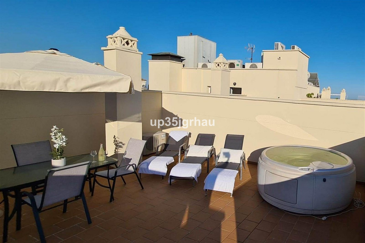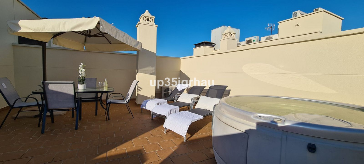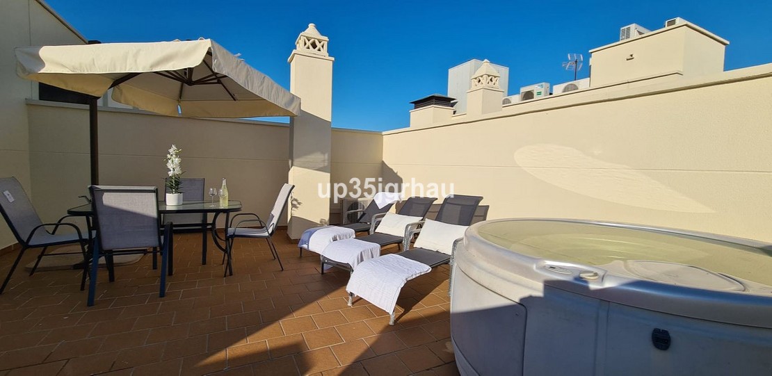 Penthouse on the beachfront and in the center of Estepona, sea views, terrace + solarium terrace, 2 bedrooms and 2 bathrooms, includes garage, jacuzzi and barbecue.