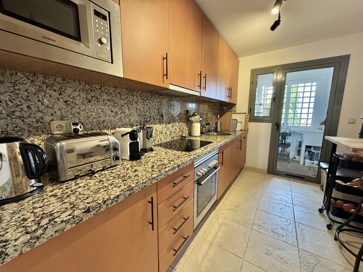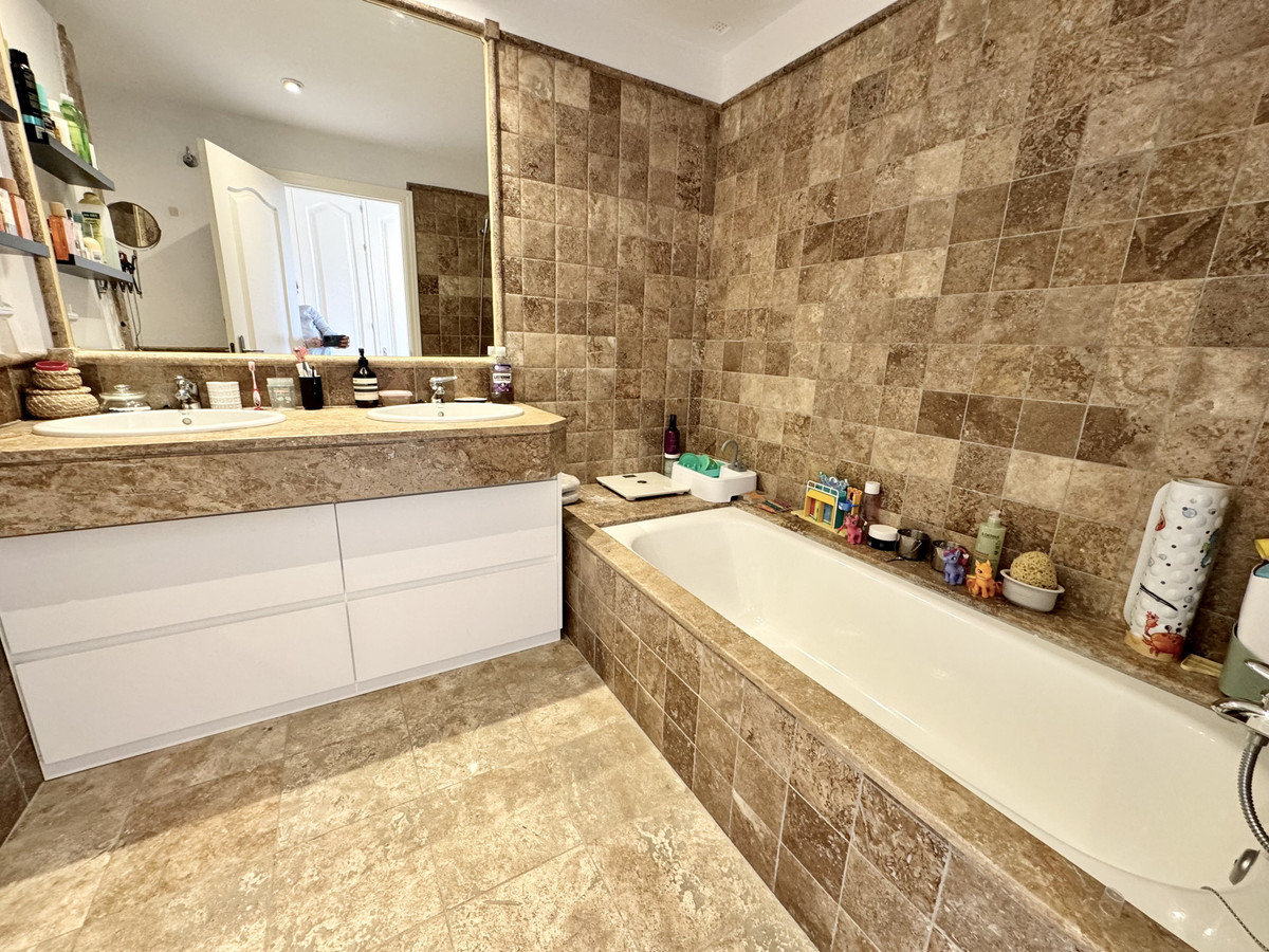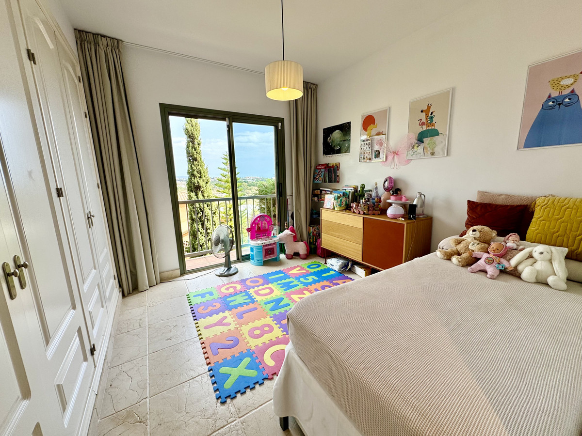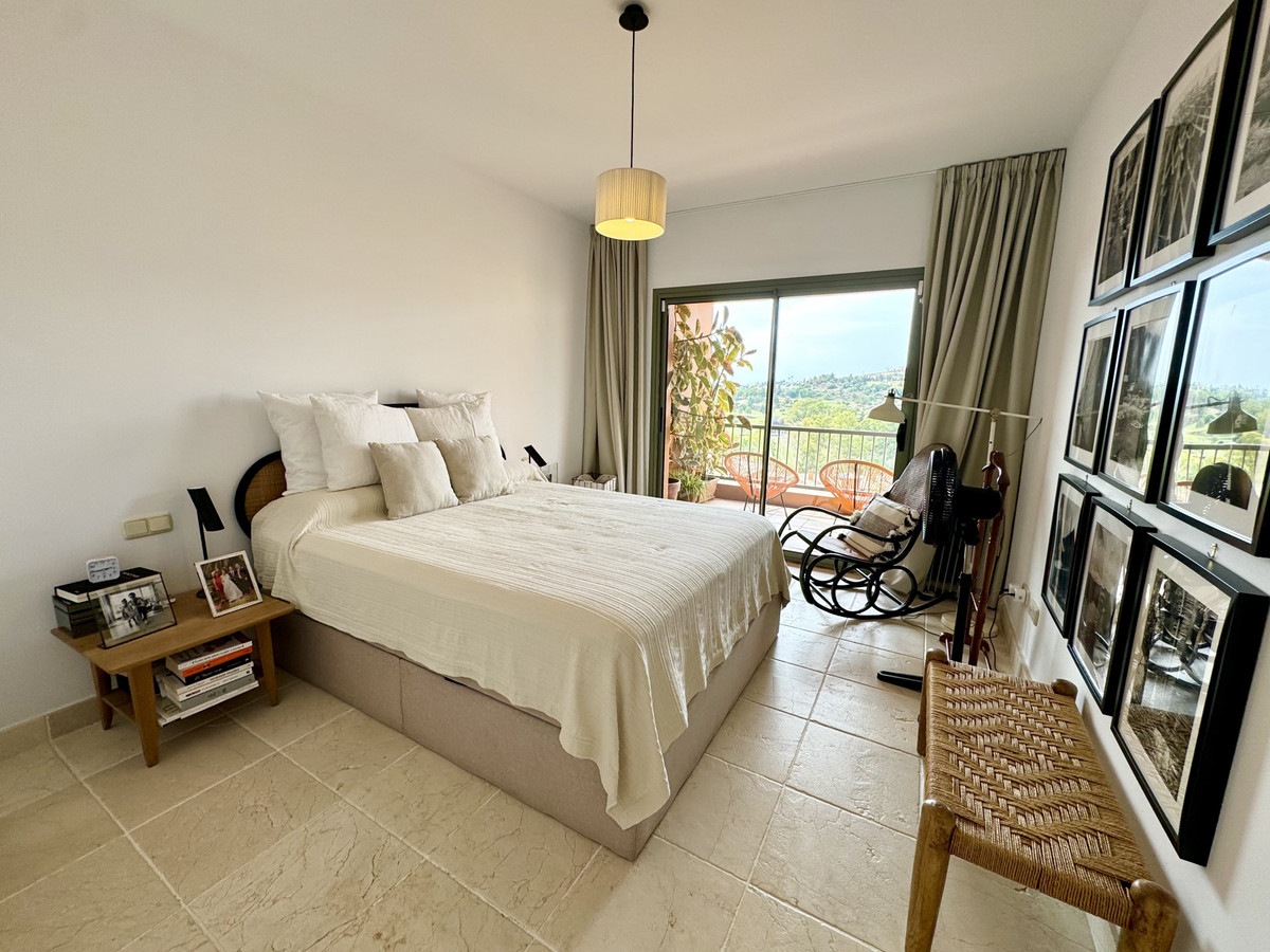 Magnificent first floor apartment in the gated luxury development with 24H security Benatalaya, Estepona. Southwest orientation with magnificent panoramic views to the sea, Gibraltar, the mountains and the golf course. Close to several golf courses, Atalaya, El Paraiso and Guadalmina, international schools and supermarkets. A few minutes drive to San Pedro and Estepona. Accommodation: Hall. Large living/dining room with direct access to the magnificent covered terrace. Fully equipped kitchen with top quality appliances and marble countertops. 2 double bedrooms. 2 bathrooms. The master bedroom has access to the terrace. Sea views also from the second bedroom. 1 parking space and 1 storage room included.