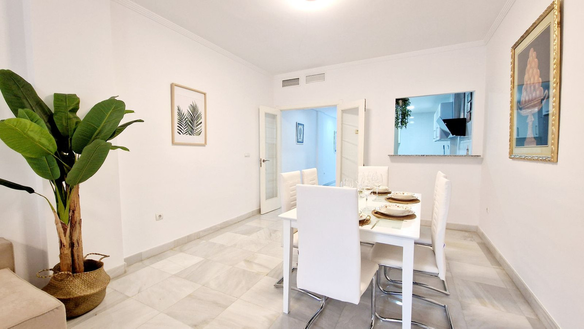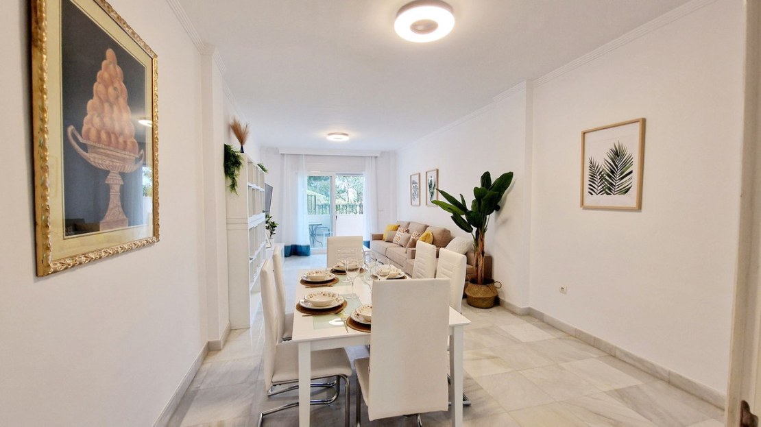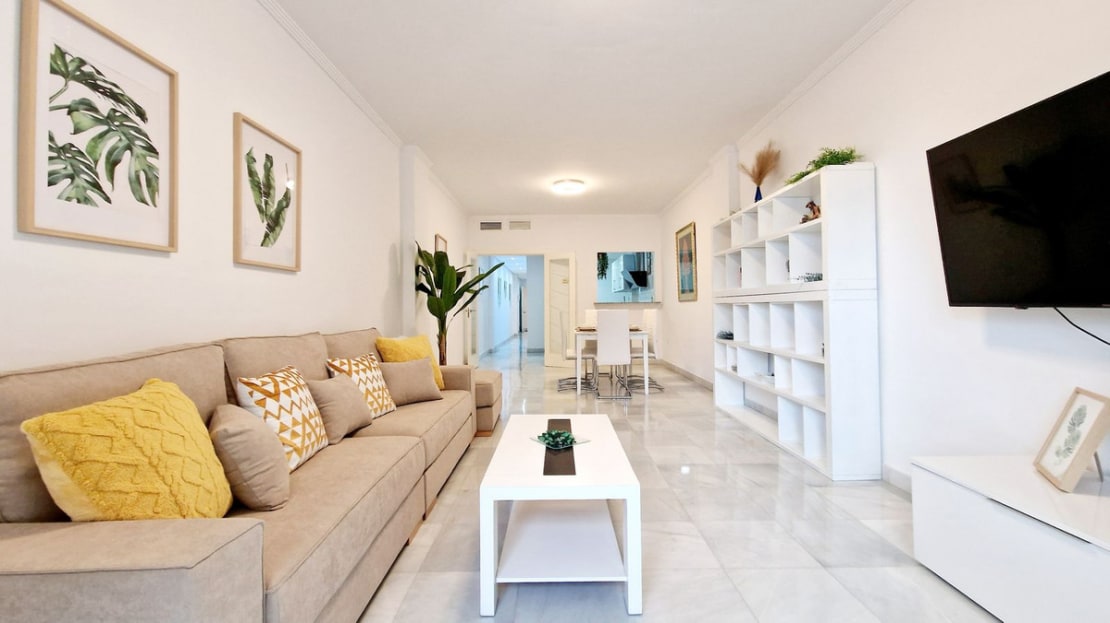 Discover this beautifully refurbished 2-bedroom, 2-bathroom first-floor apartment located just steps away from the golden sands of Playa La Rada and the vibrant centre of Estepona. Sea views from the terrace!