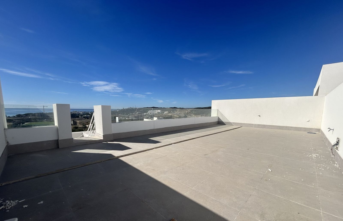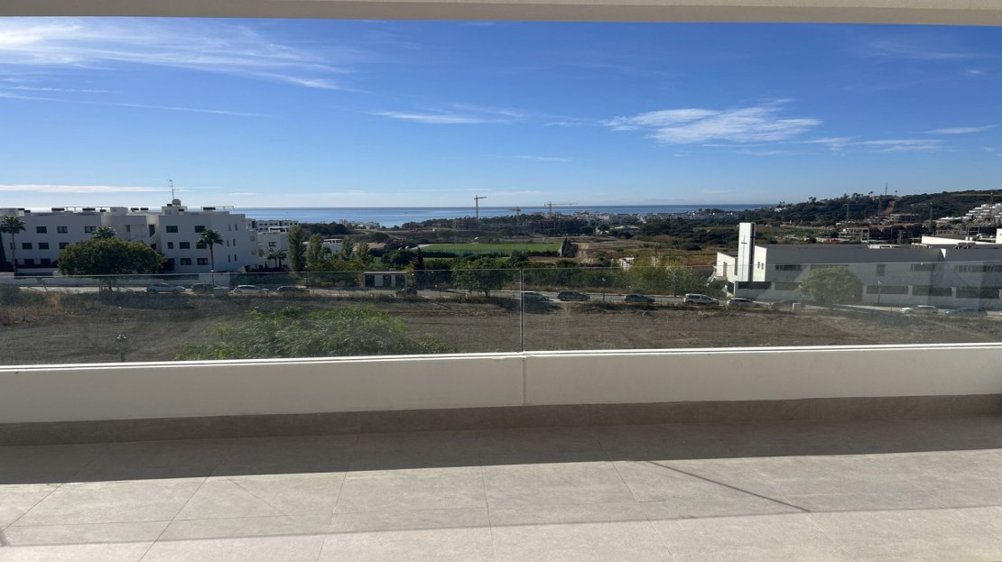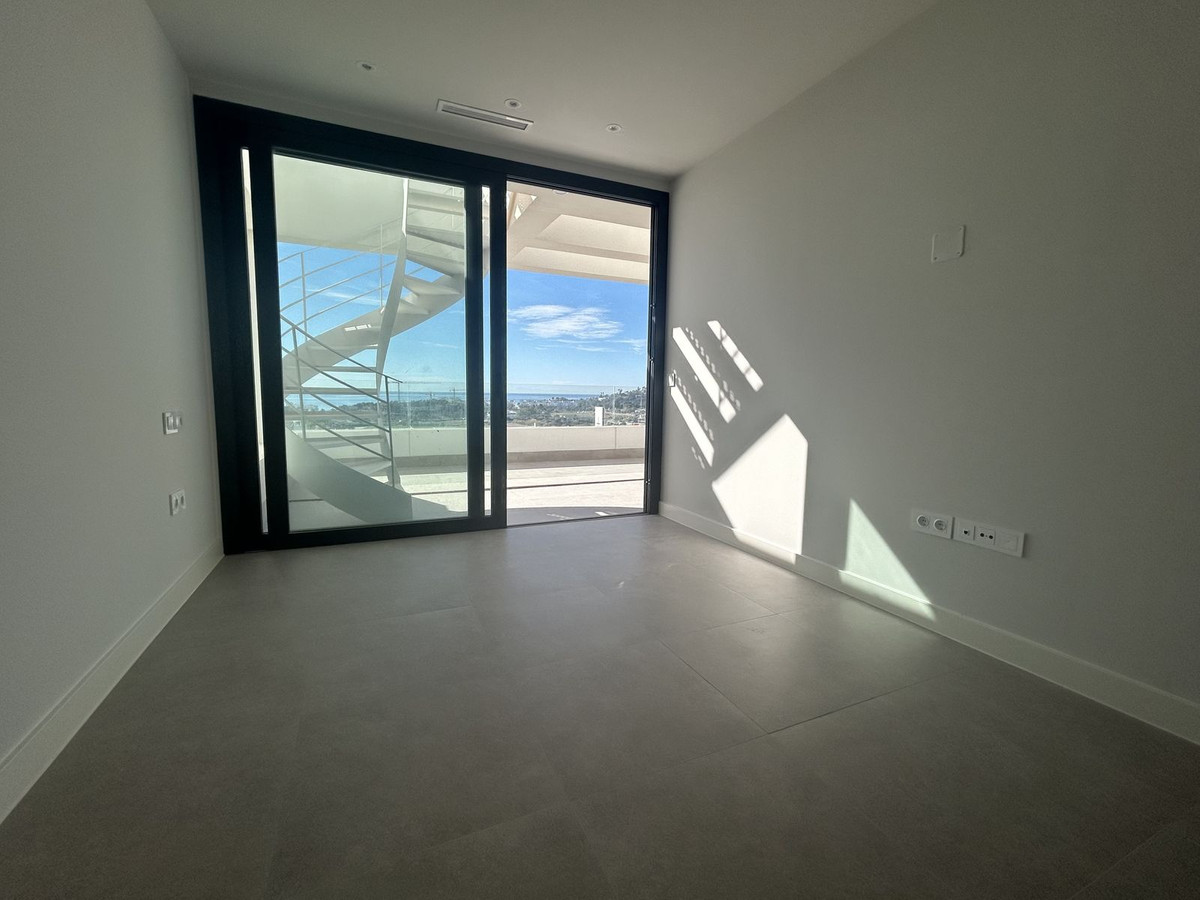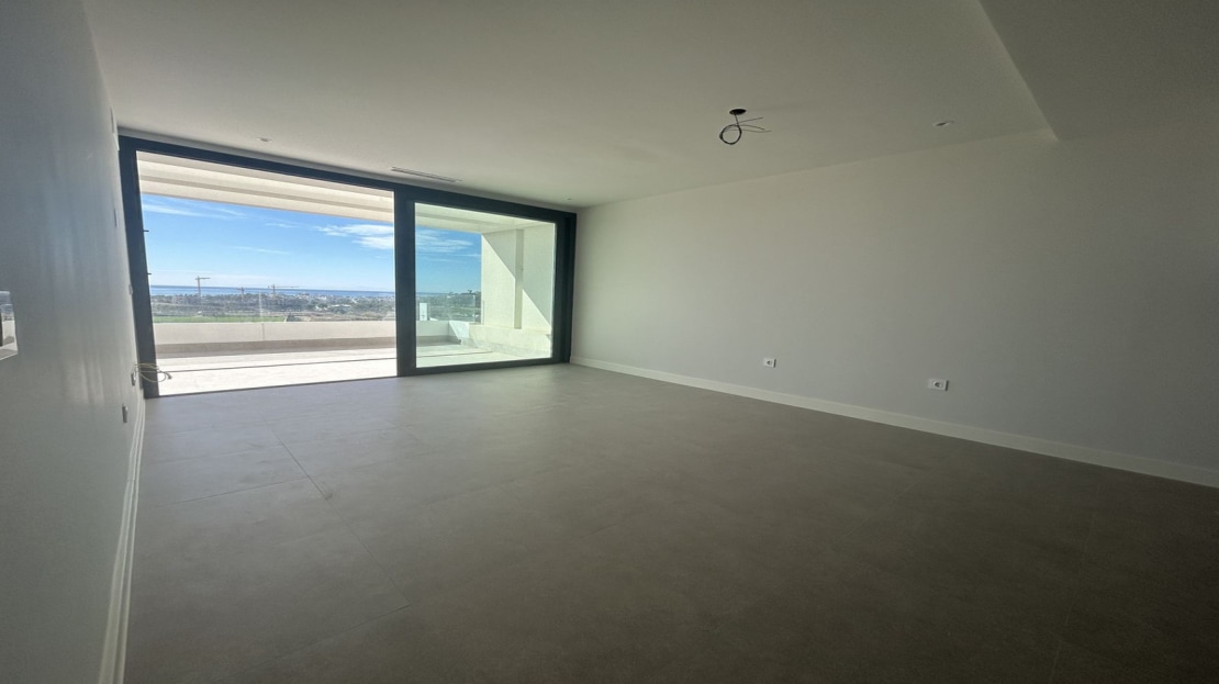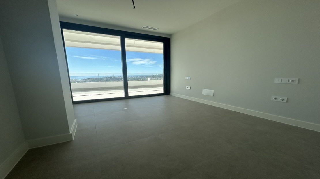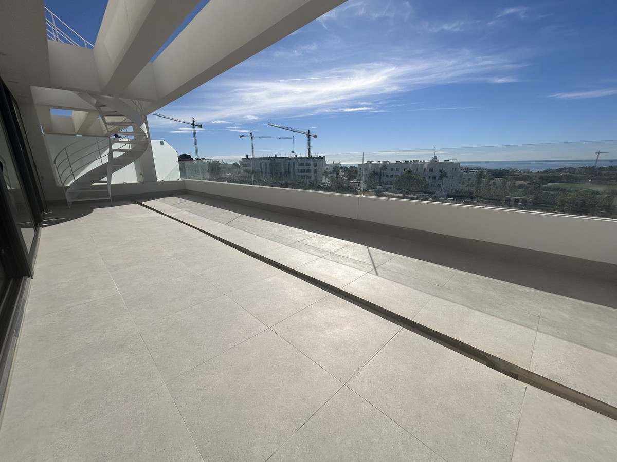 This brand new apartment in Estepona offers beautiful sea views from spacious terraces. The property has two bedrooms, two bathrooms a modern kitchen with a connecting terrace, as well as a roof terrace that can be accessed by spiral stairs from the other terrace.