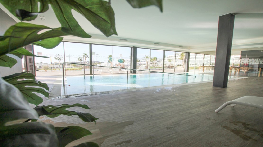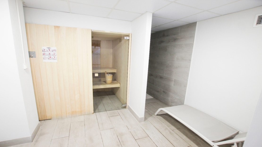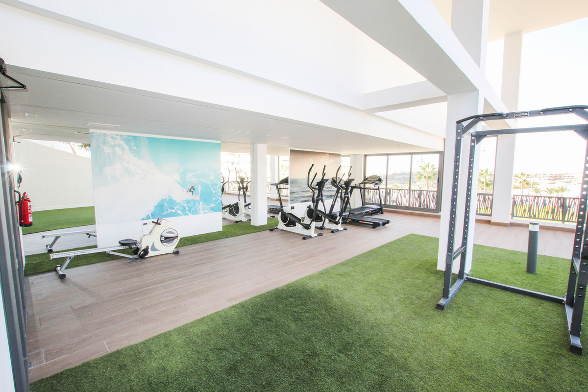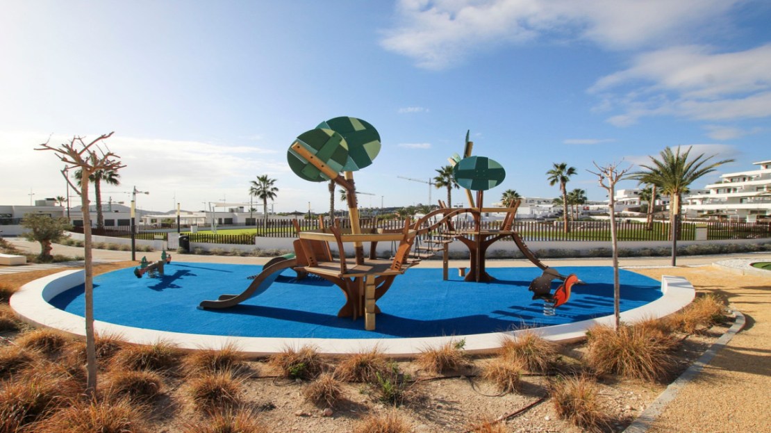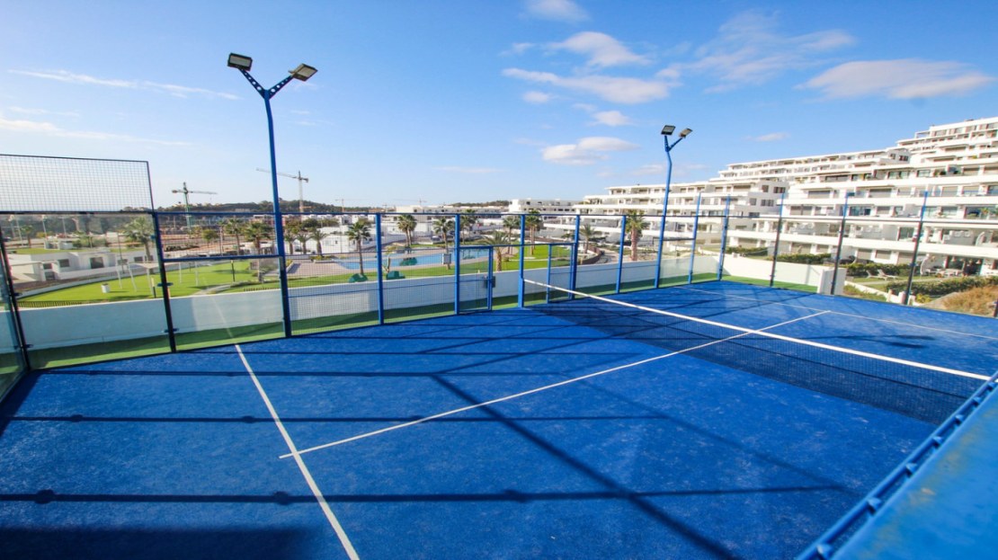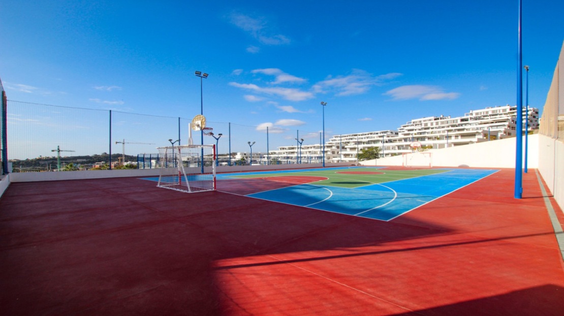 3 communal swimming pools (1 of which is indoor), gym, sauna, garden, padel court, playground
