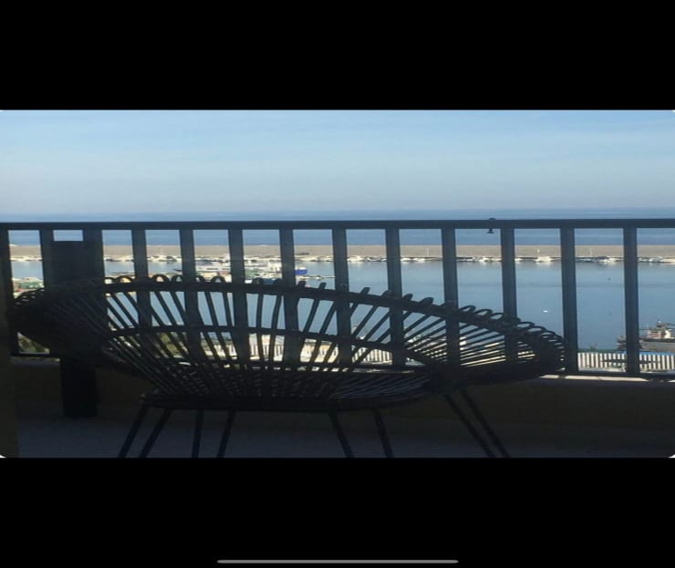 • Private balcony offering breathtaking views of the beach and port.